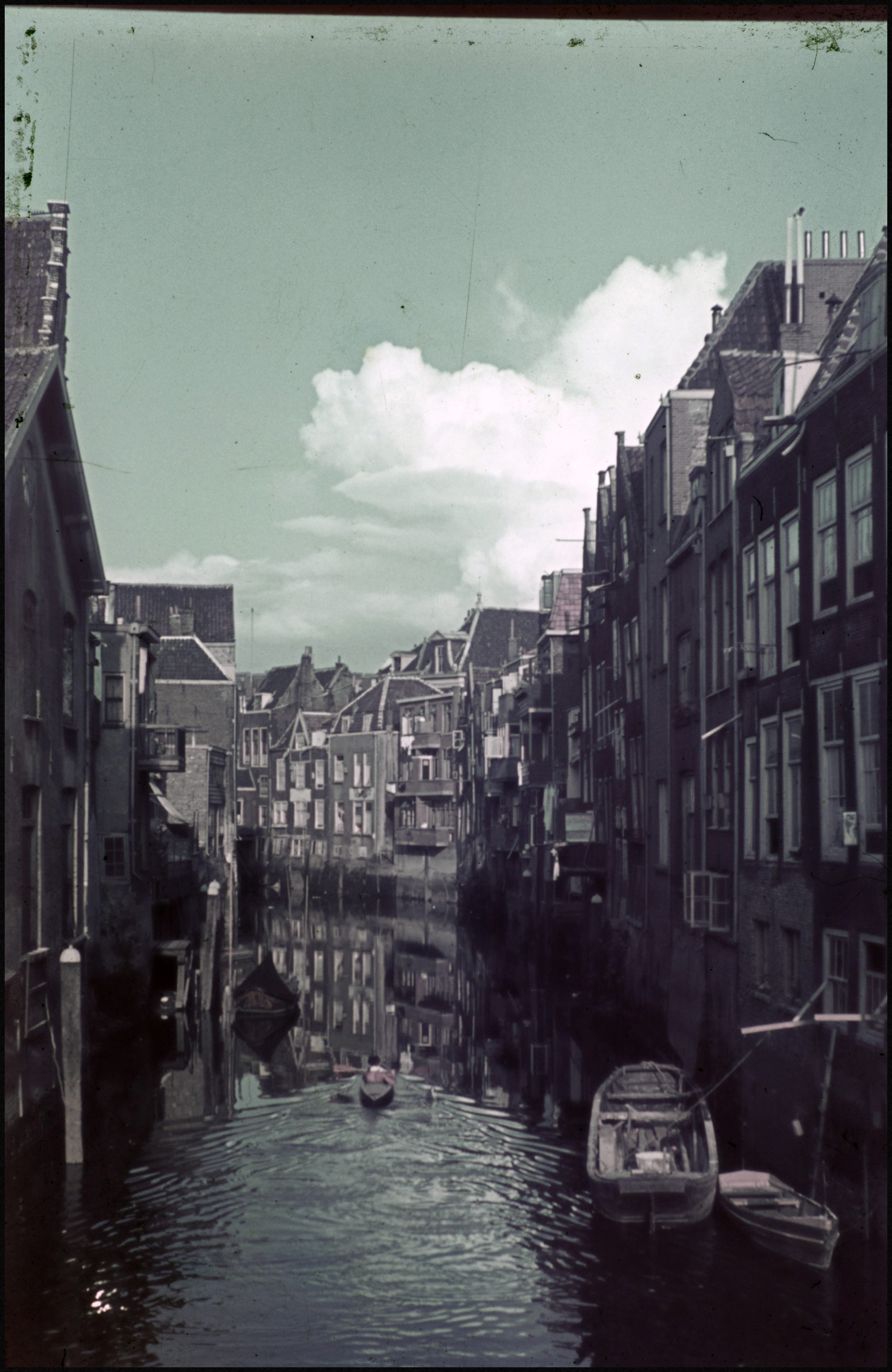 - De Voorstraatshaven oostwaarts vanaf de Pelserbrug met links de achterkant van de Grote Kerksbuurt en rechts de Voorstraat.