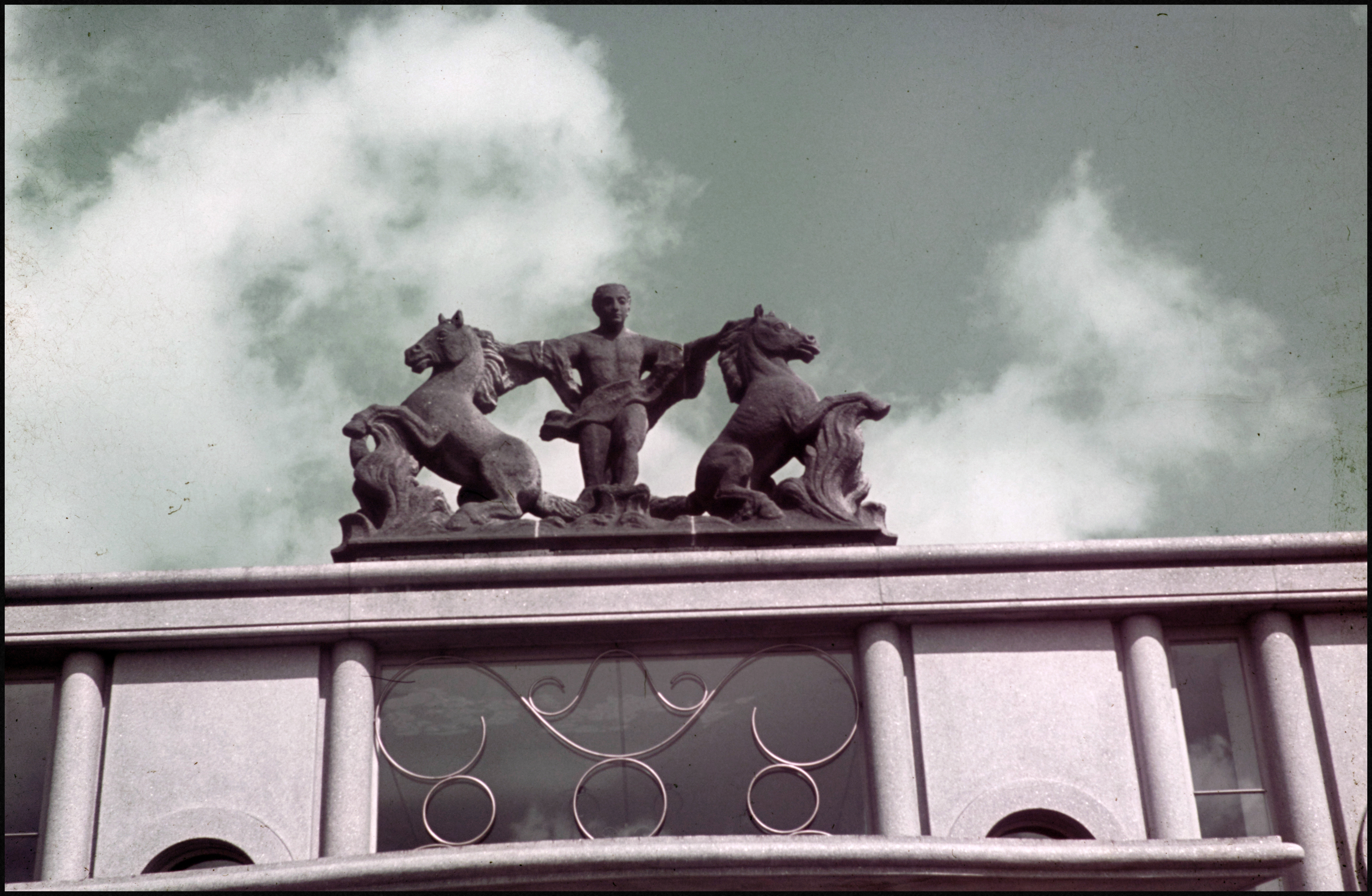 Beeldhouwwerk op het gebouw van verzekeringsmaatschappij Holland aan de Burgemeester de Raadtsingel.