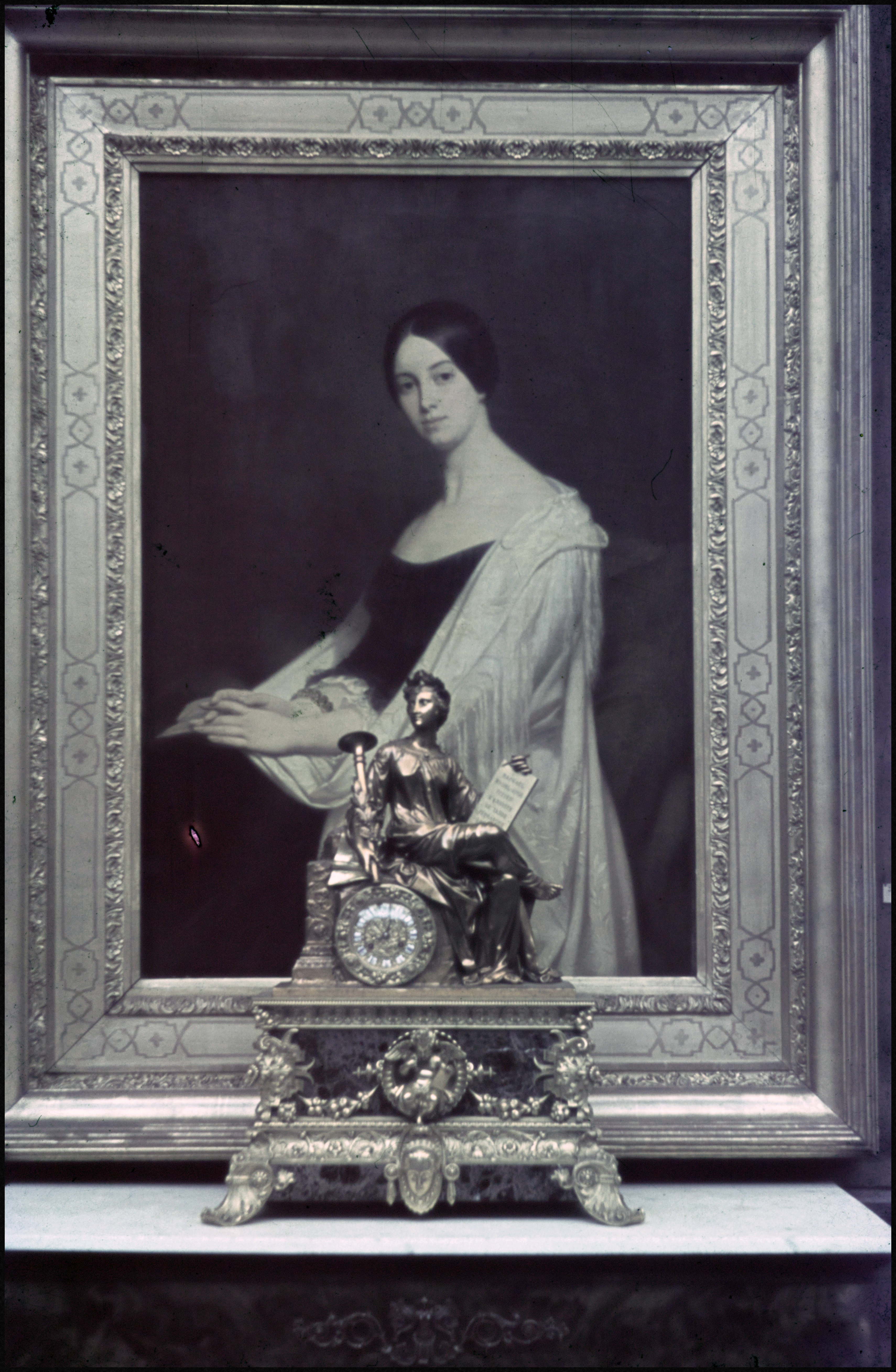 - Portret van Mevrouw Victor Place 1852 geschilderd door Ary Scheffer. Ervoor staat een Franse pendule.