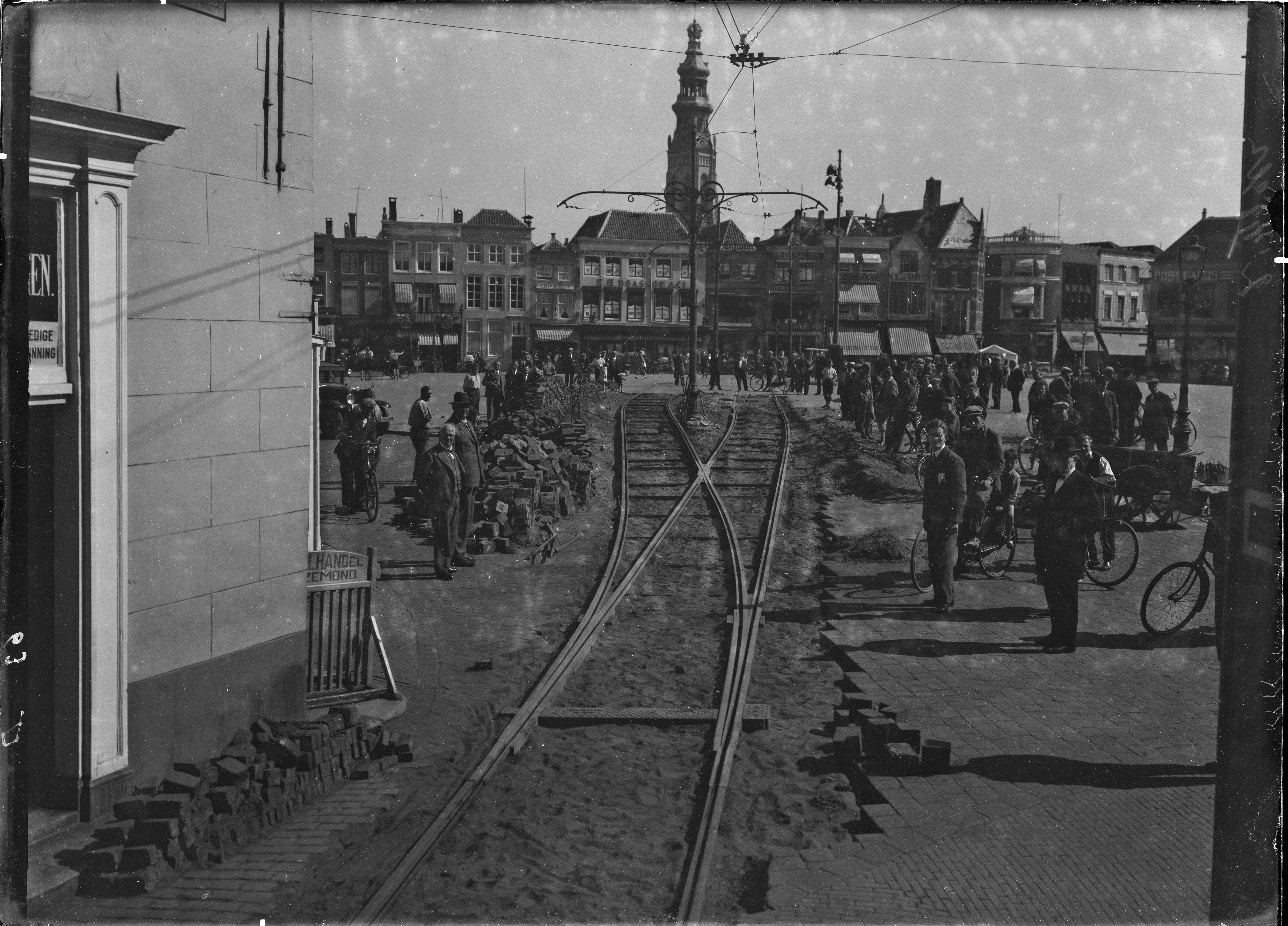 kerken publiek / toeschouwers tramrails wegenbouw