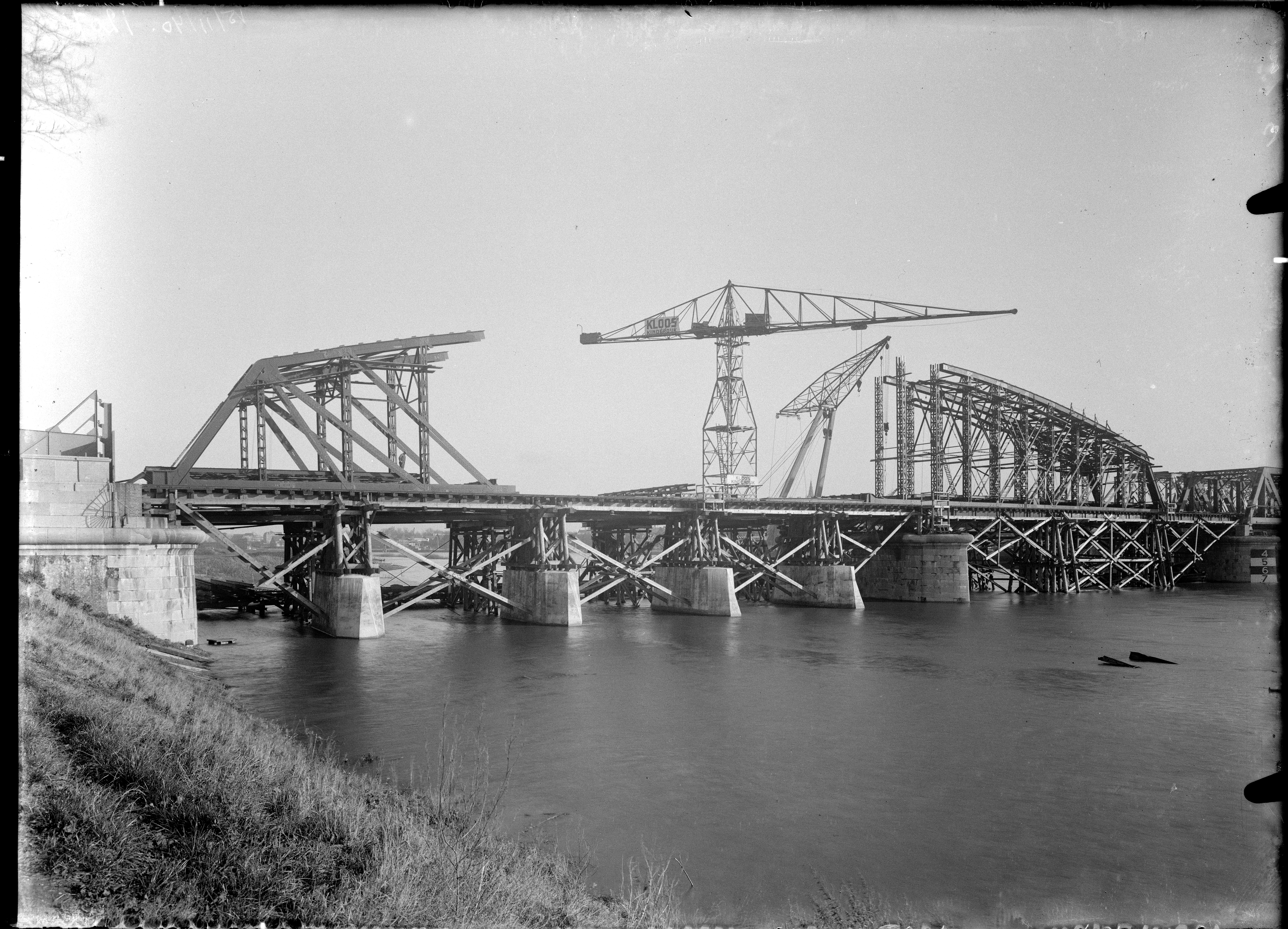 Bouw van de spoorbrug over de Maas bij Venlo.