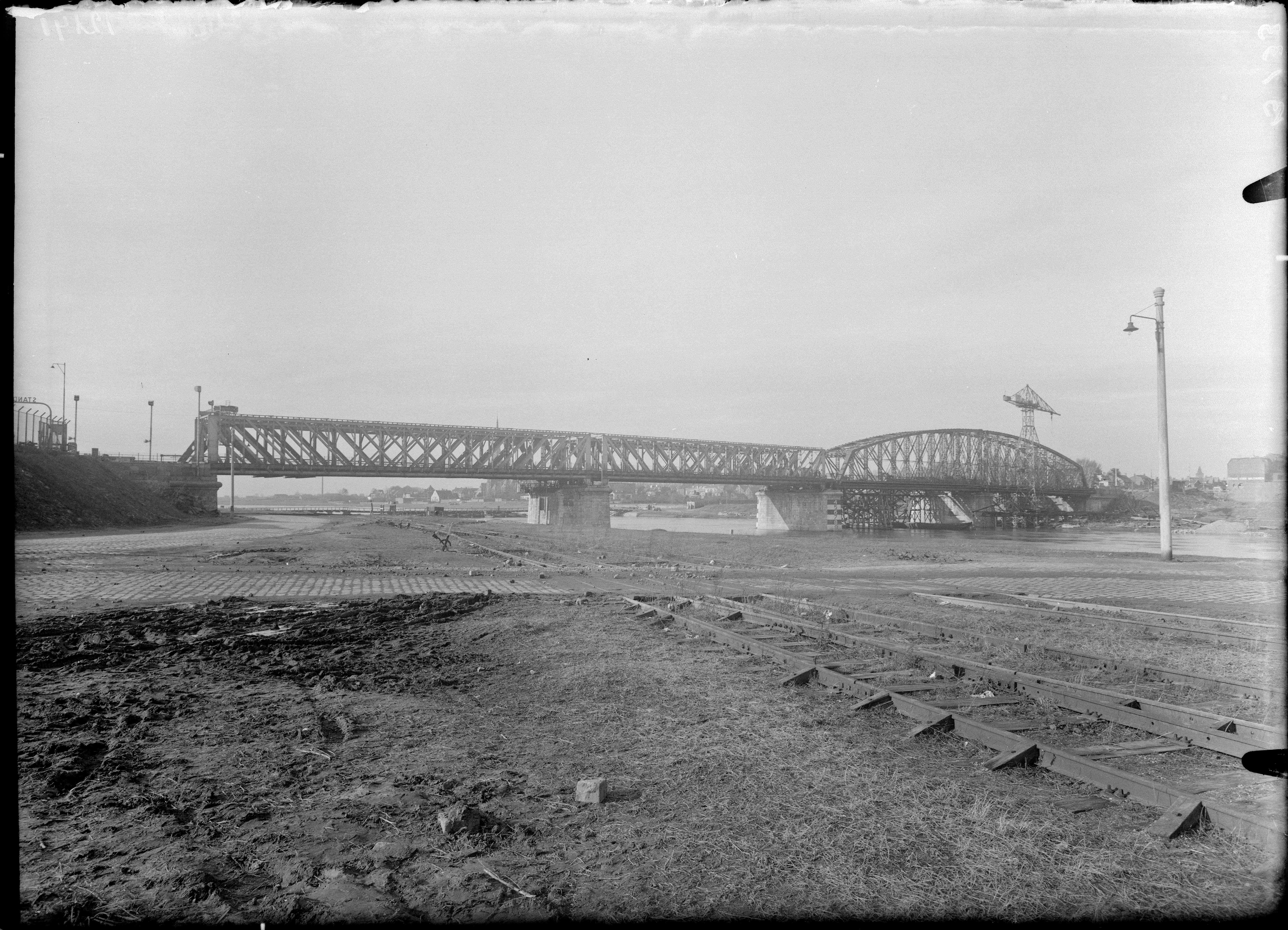 Bouw van de spoorbrug over de Maas in Venlo.
