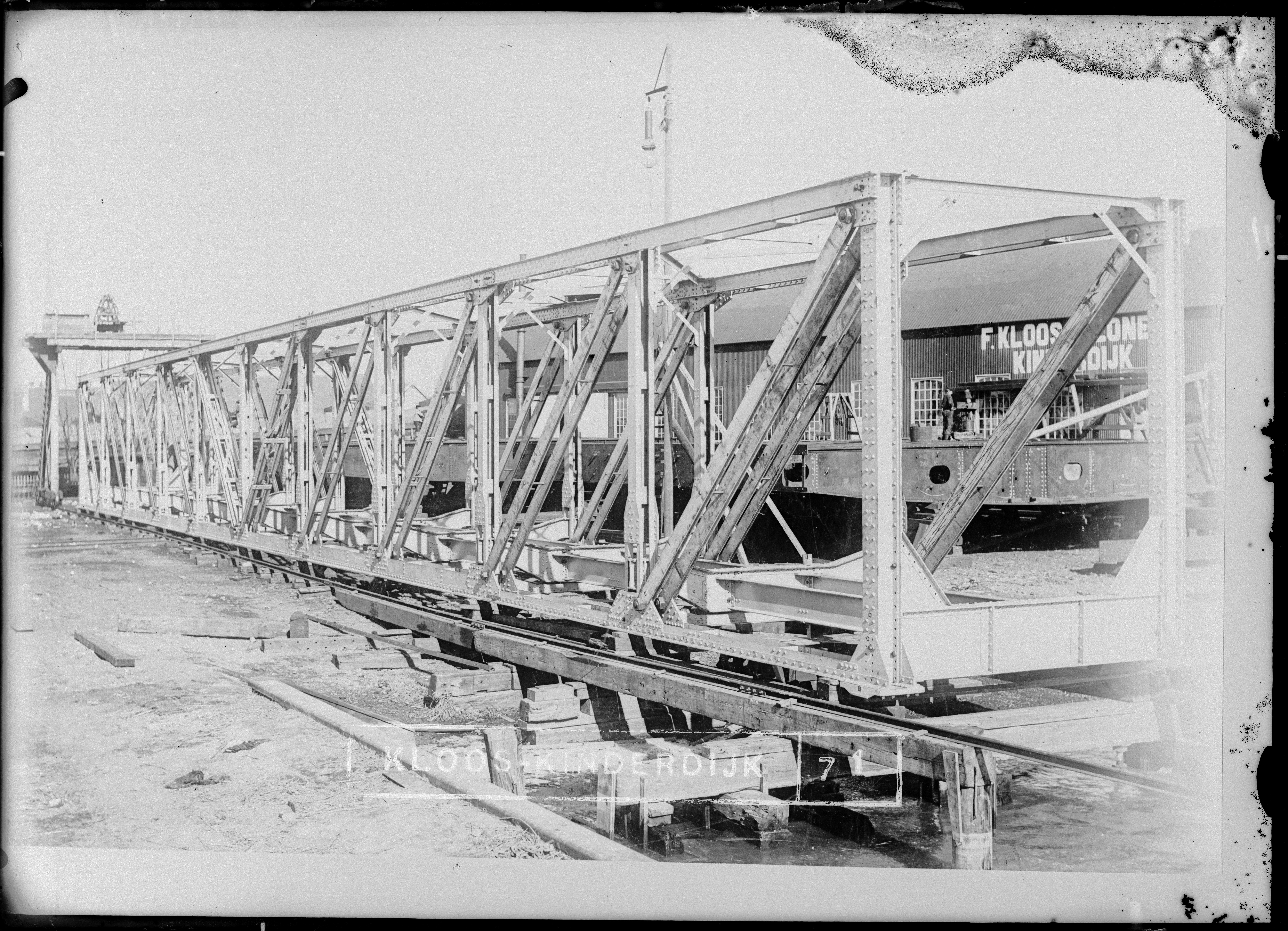 Vakwerkbrug in aanbouw. Departement van Koloniën.