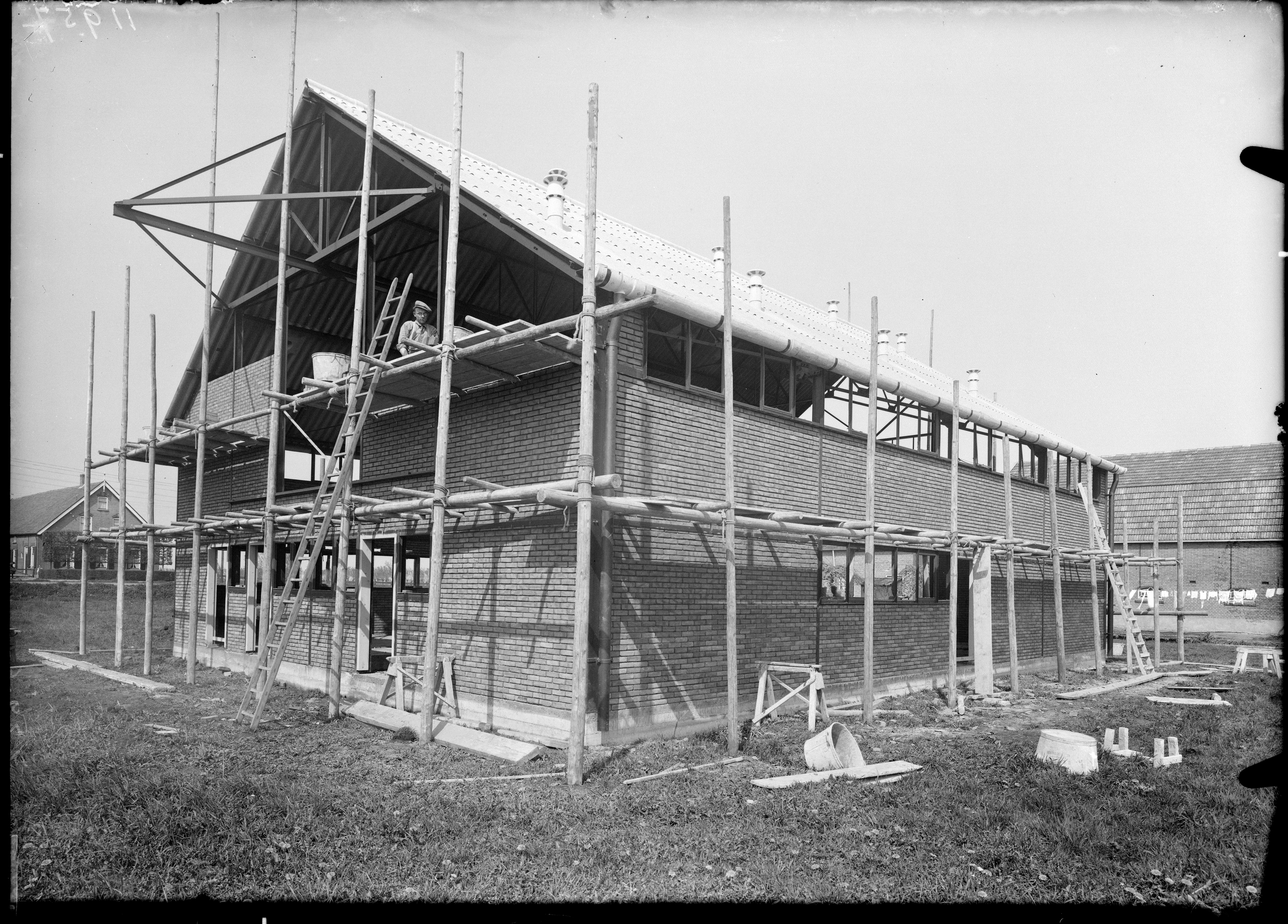 Bouwplaats in Molenaarsgraaf voor de coöp. grasdrogerij De Graafstroom, Bleskensgraaf.