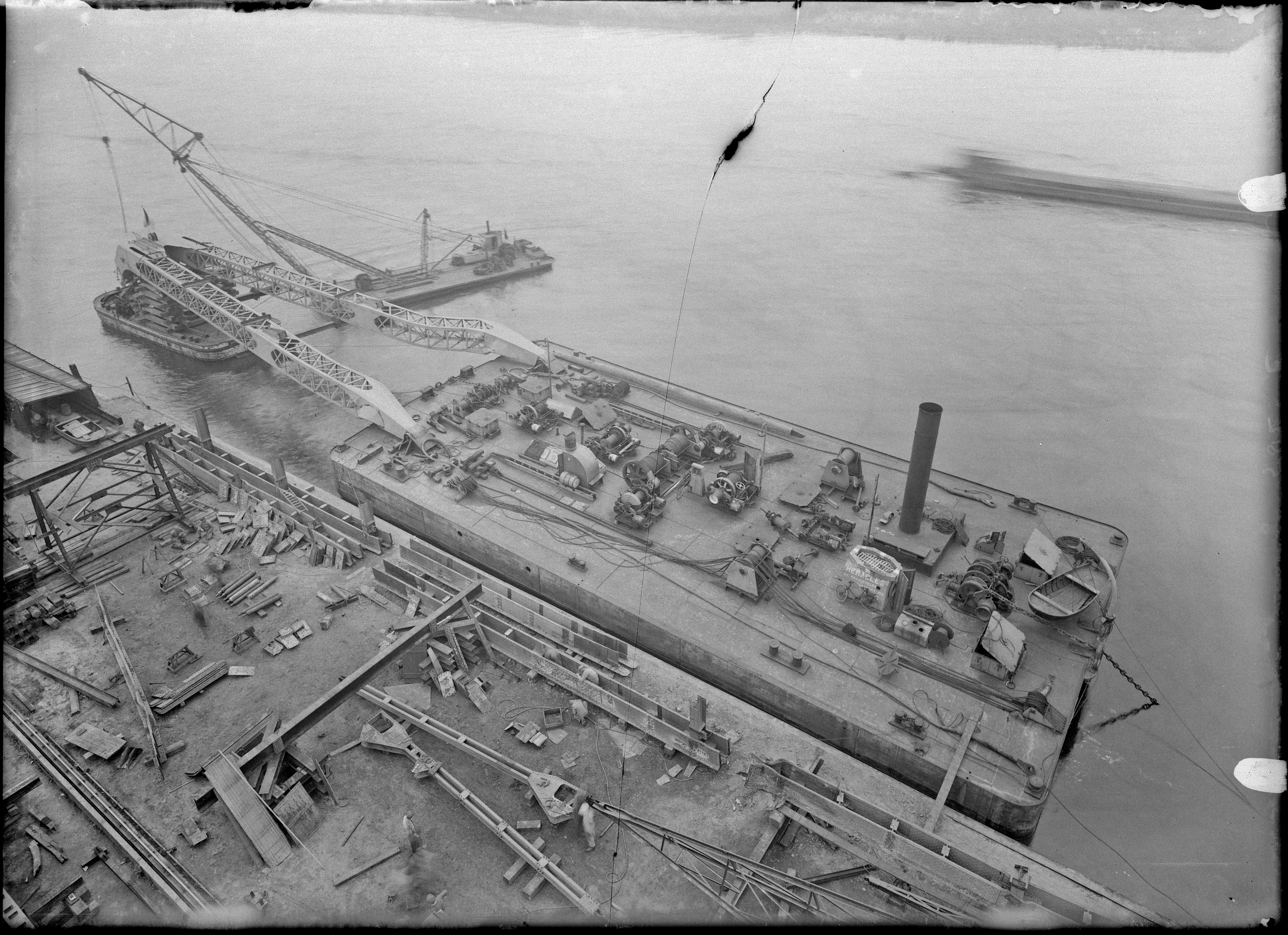 Reparatie van drijvende bok Heracles bij Kraayeveld in Sliedrecht.