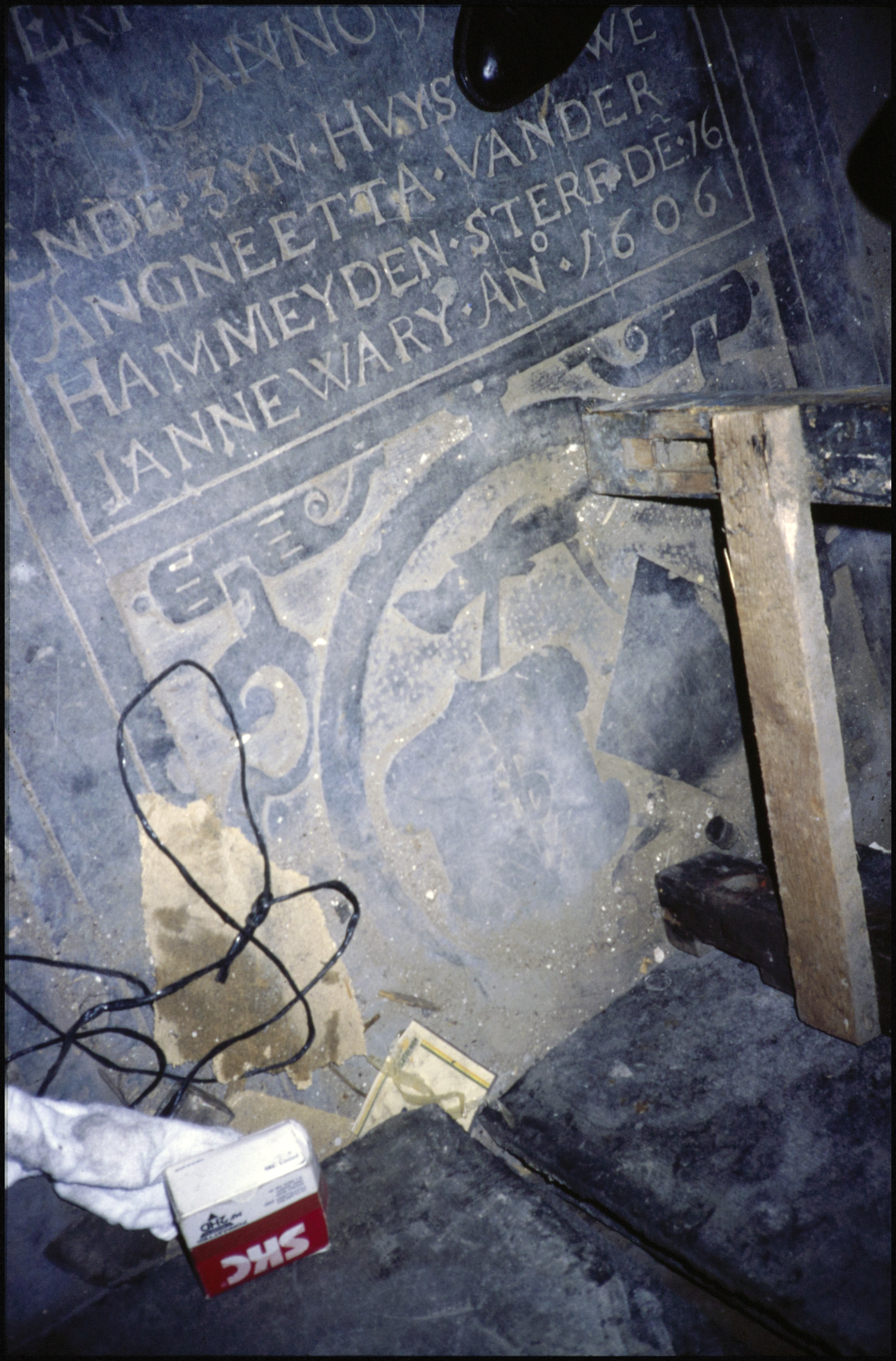 ...ANNO... ENDE.ZYN.HUYSVROUWE. ANGNEETTA.VAN.DER. HAMMEYDEN.STERFDE.16 JANNEWARY.AN.1606