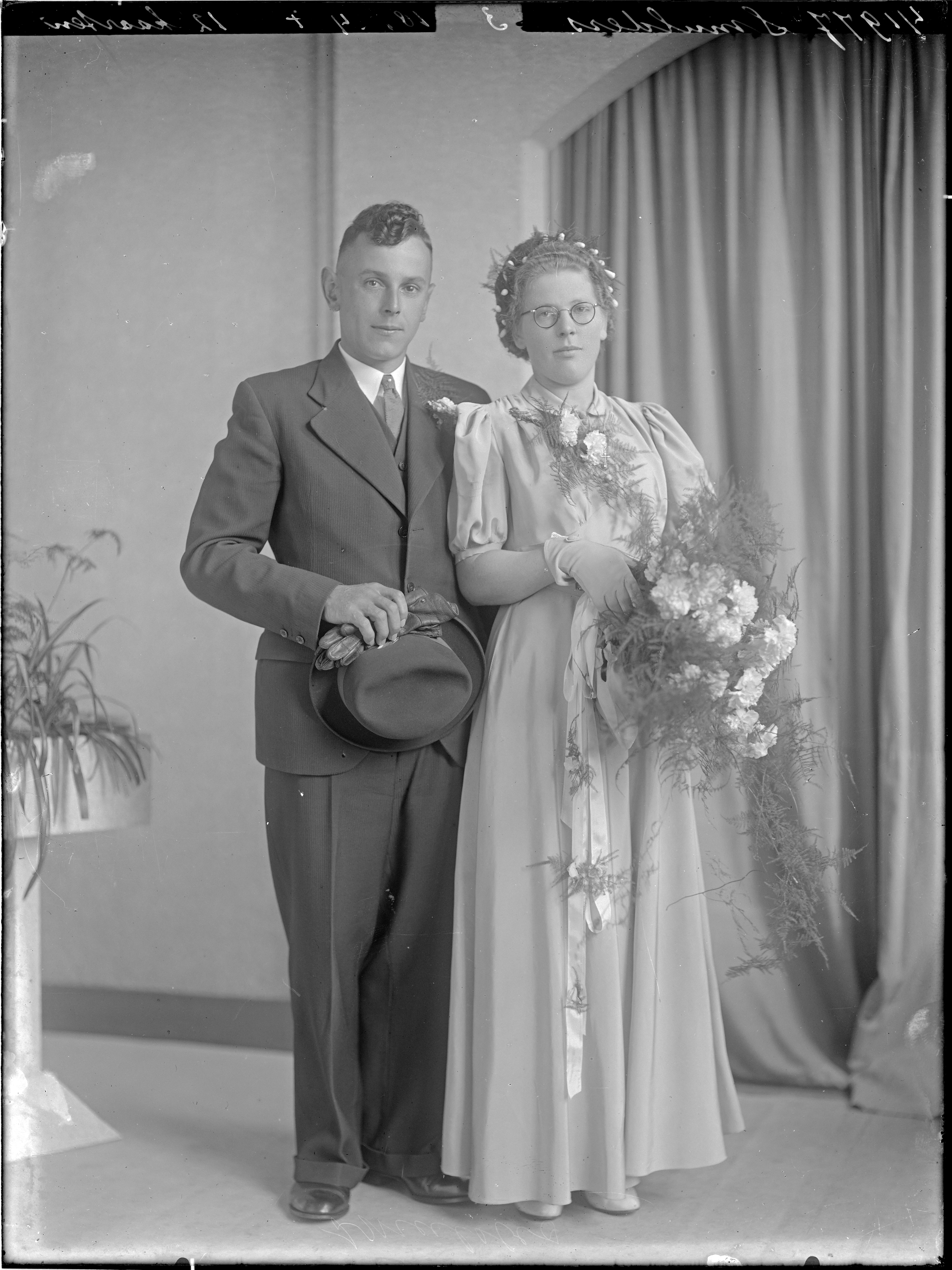 (in de rand '41977 SMULDERS 3 18x24 12 kaarten') huwelijksfoto bruidspaar