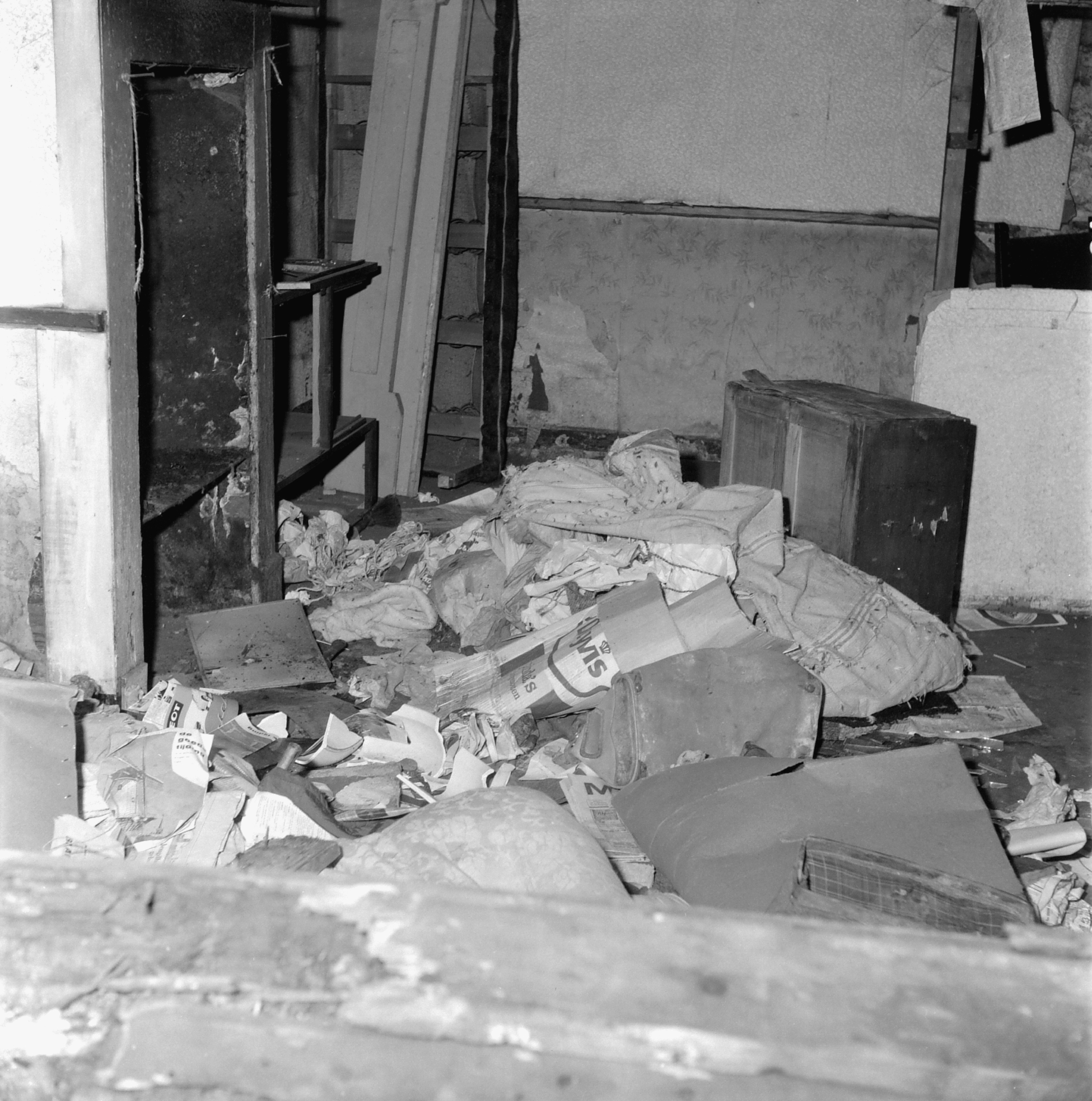 Binnen in een onbewoonbaar verklaard huis aan de Heer Heymansuysstraat