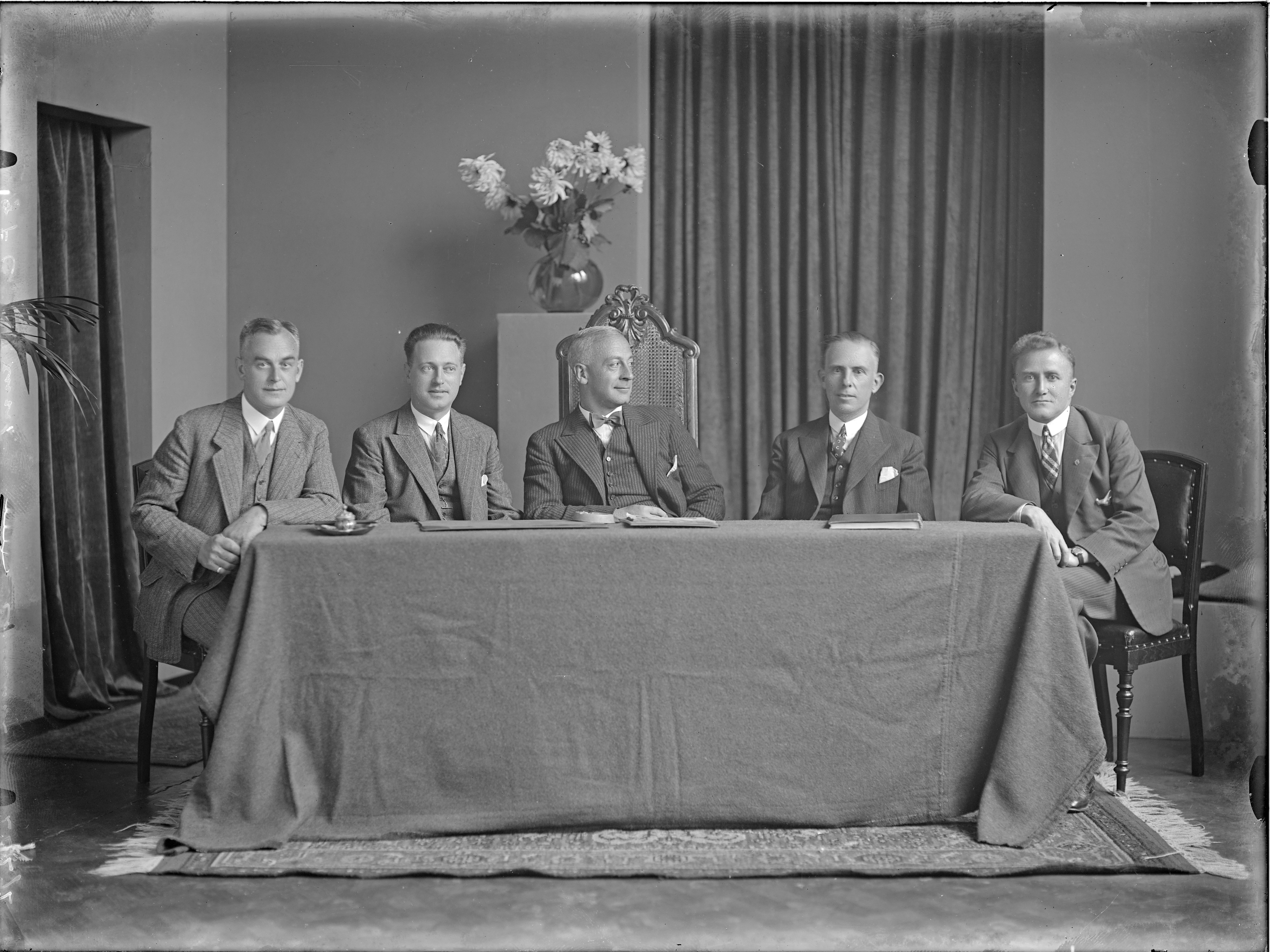 (in de rand '22272 D.F.C. Bestuur zwart') vijf mannen aan tafel; hoort bij 309_101105