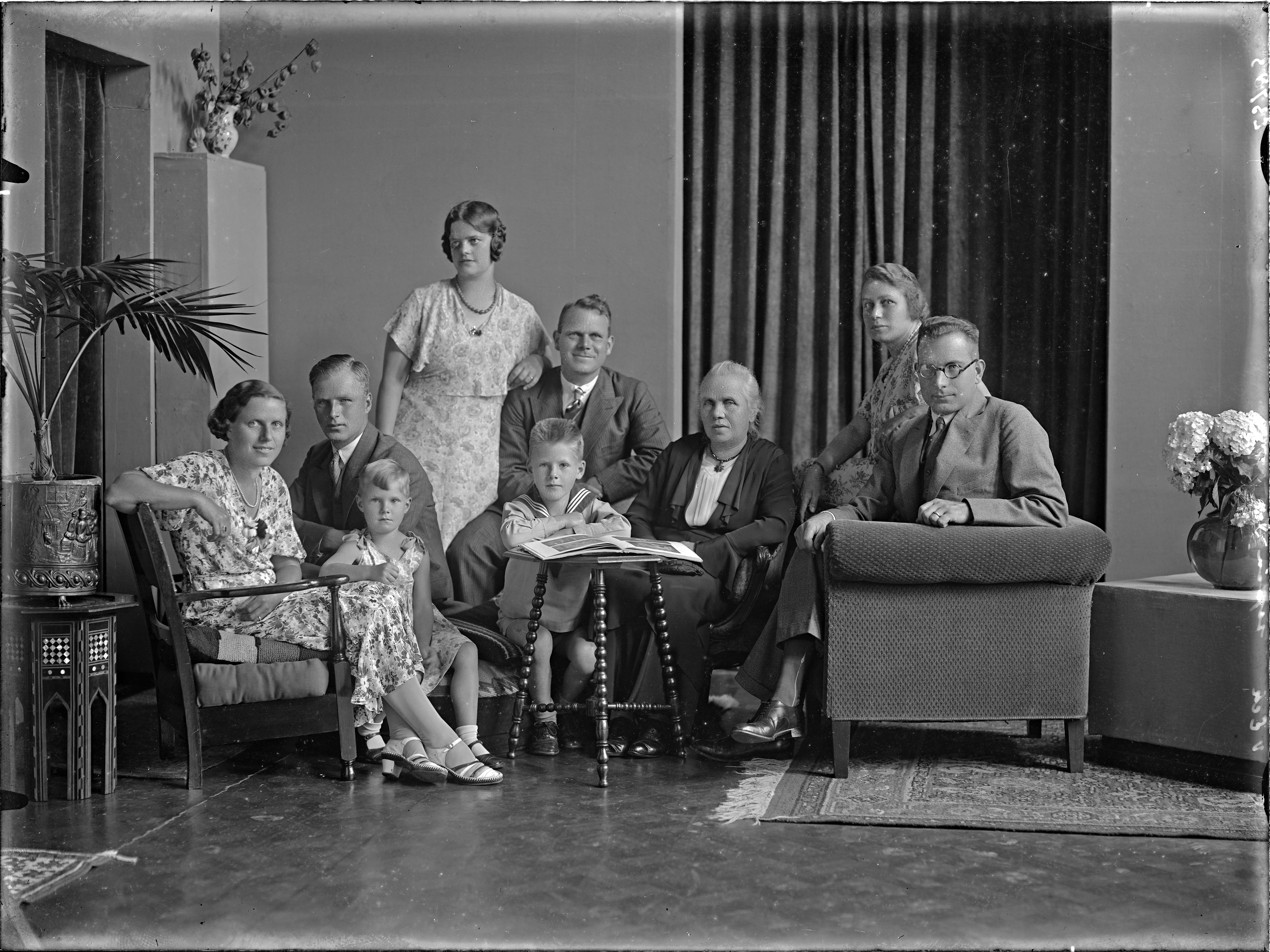 (in de rand '23783 VAN ECK sepia') foto van familie; 9 personen;
