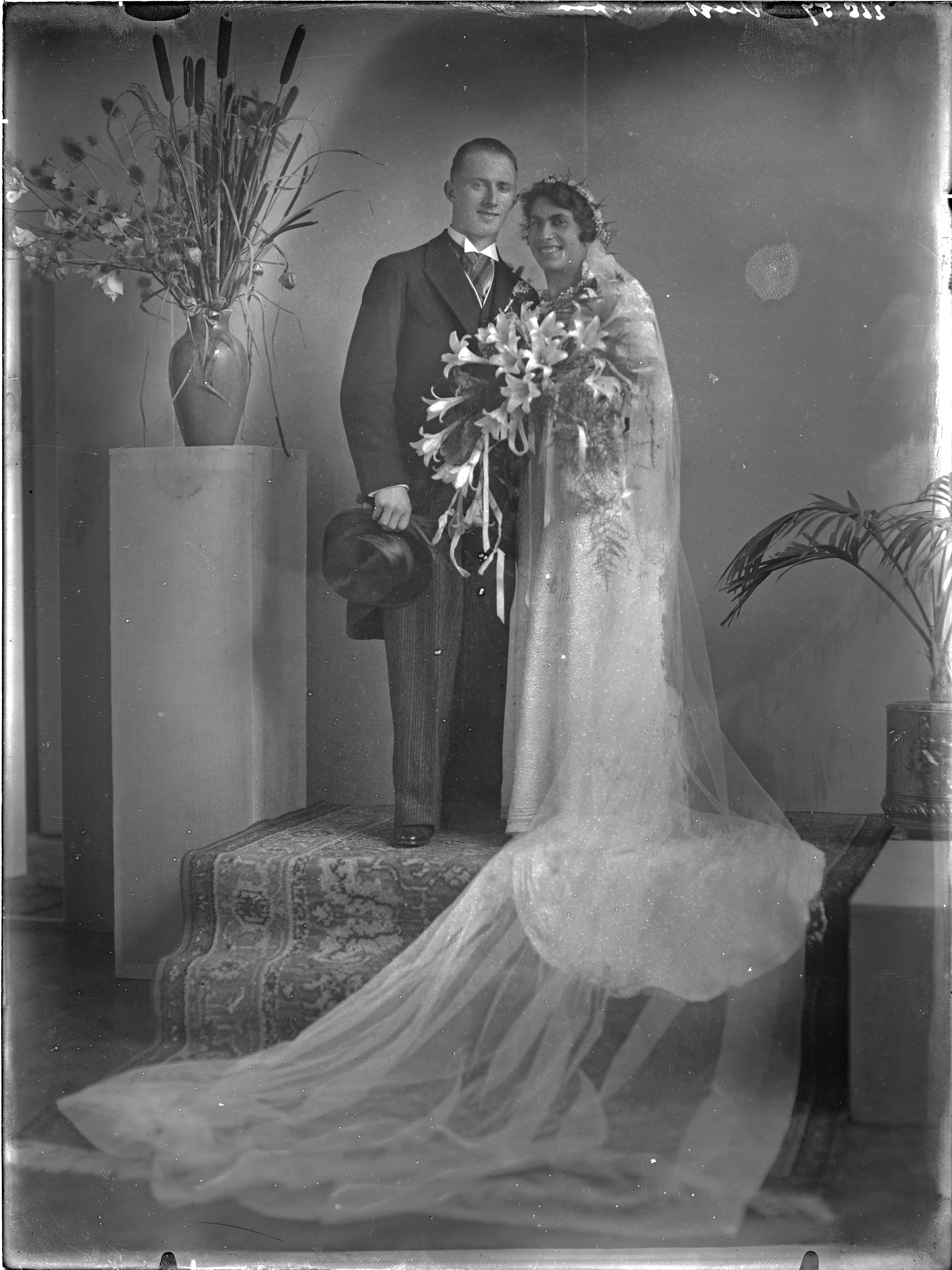 (309_26857) bruidspaar ---- BEERMAN 18-11-1936 fotonummer 26857 van Vugt Hunthamerstraat 75 den Bosch [bron: www.dordtenaZOEKer.nl] ---- huwelijksakte 18-11-1936 Adrianus Leonardus Antonius van Vugt 's-Hertogenbosch oud 26 jaren banketbakker + Deliana Maria van Loon oud 24 jaren