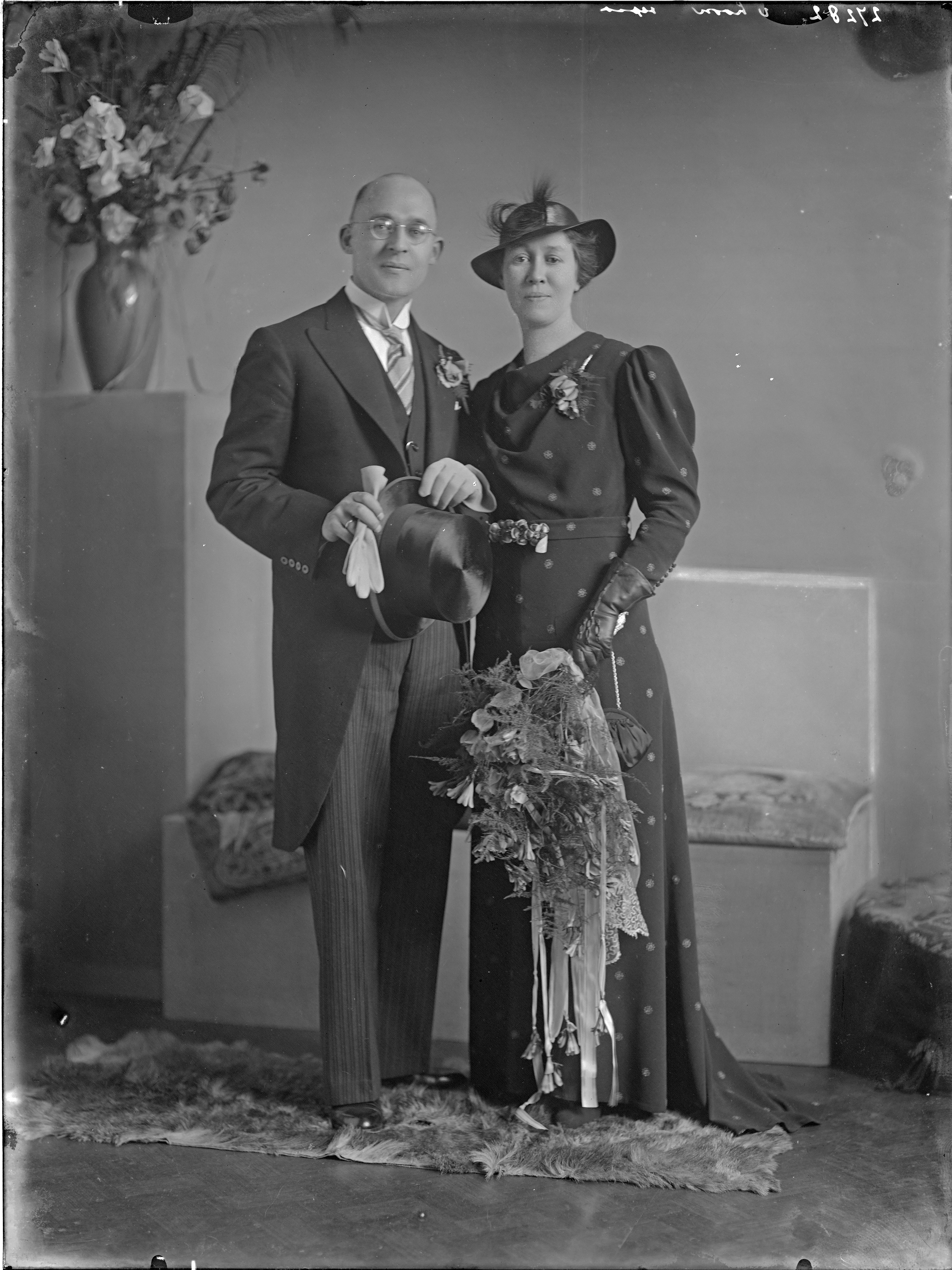 (in de rand '27282 VAN LOON sepia') huwelijksfoto; bruid in het zwart
