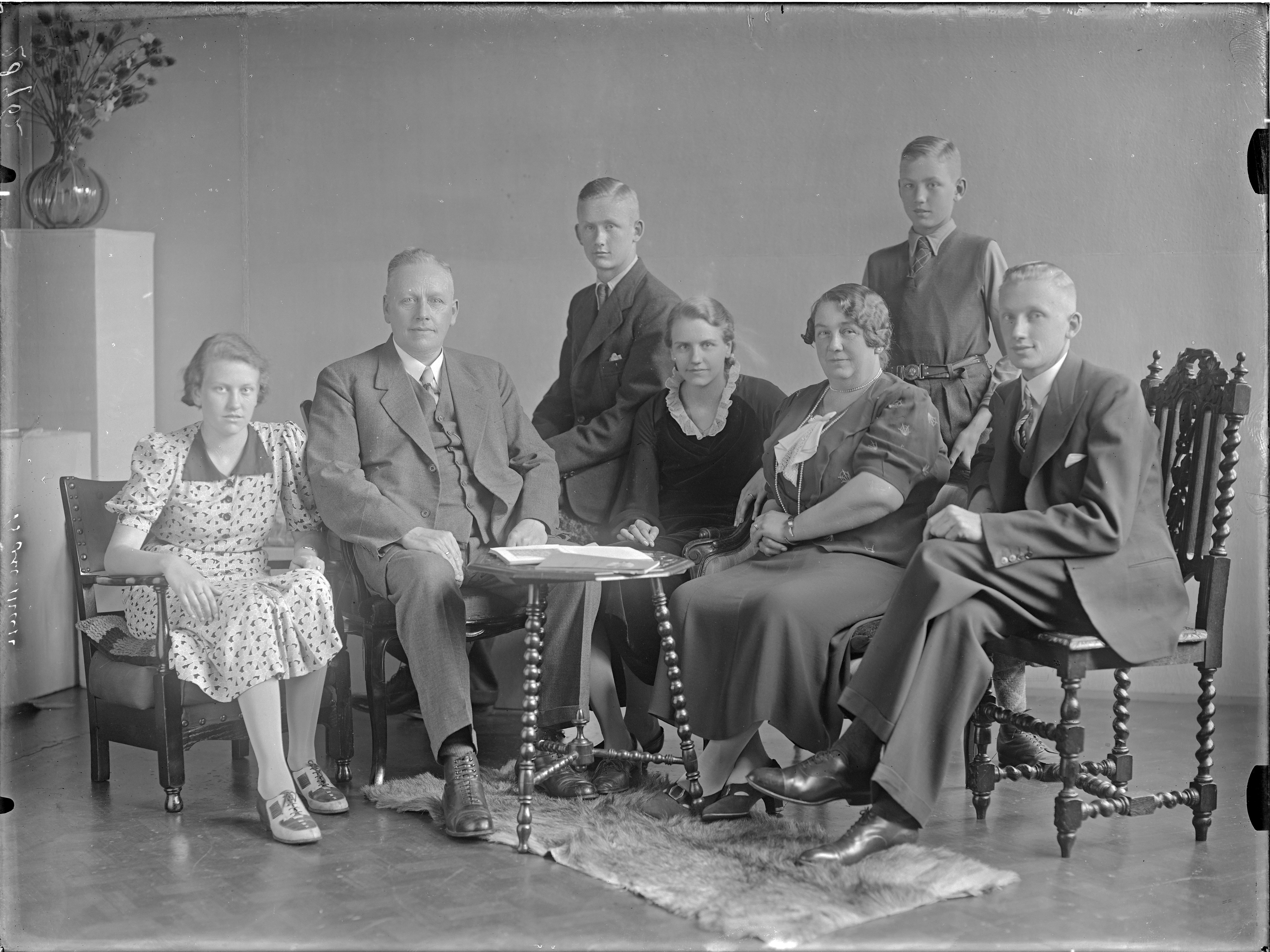 Vader en moeder met kinderen: Arie, Chris, Dick, Mereke en Kokkie.