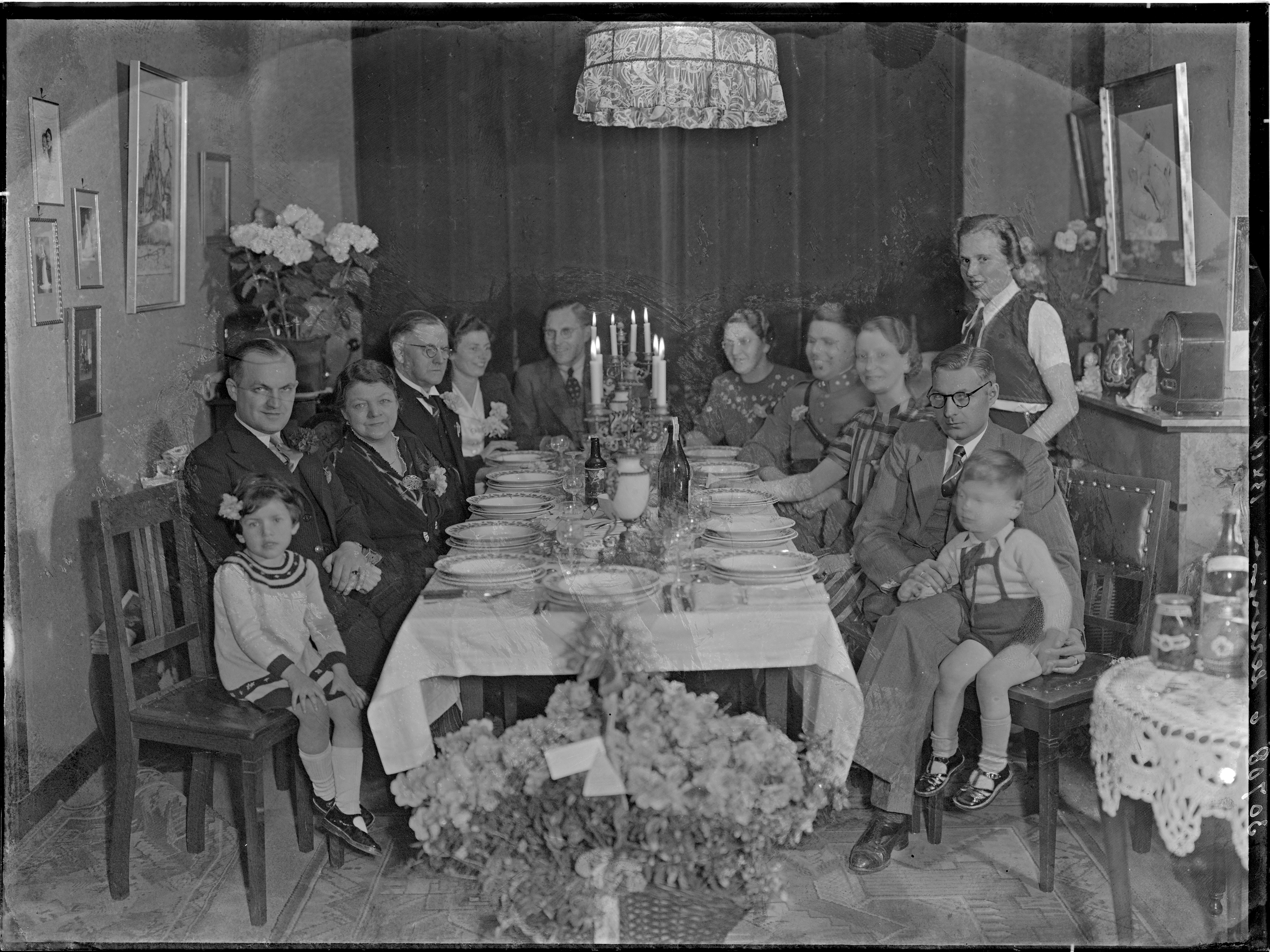 Deze foto is de familie van Herwijnen en in uniform Henk Dicke getrouwd met Bep van Herwijnen aan tafel in het familiehuis aan het Kromhout 195/197/199.Verdere namen zal ik later toevoegen.