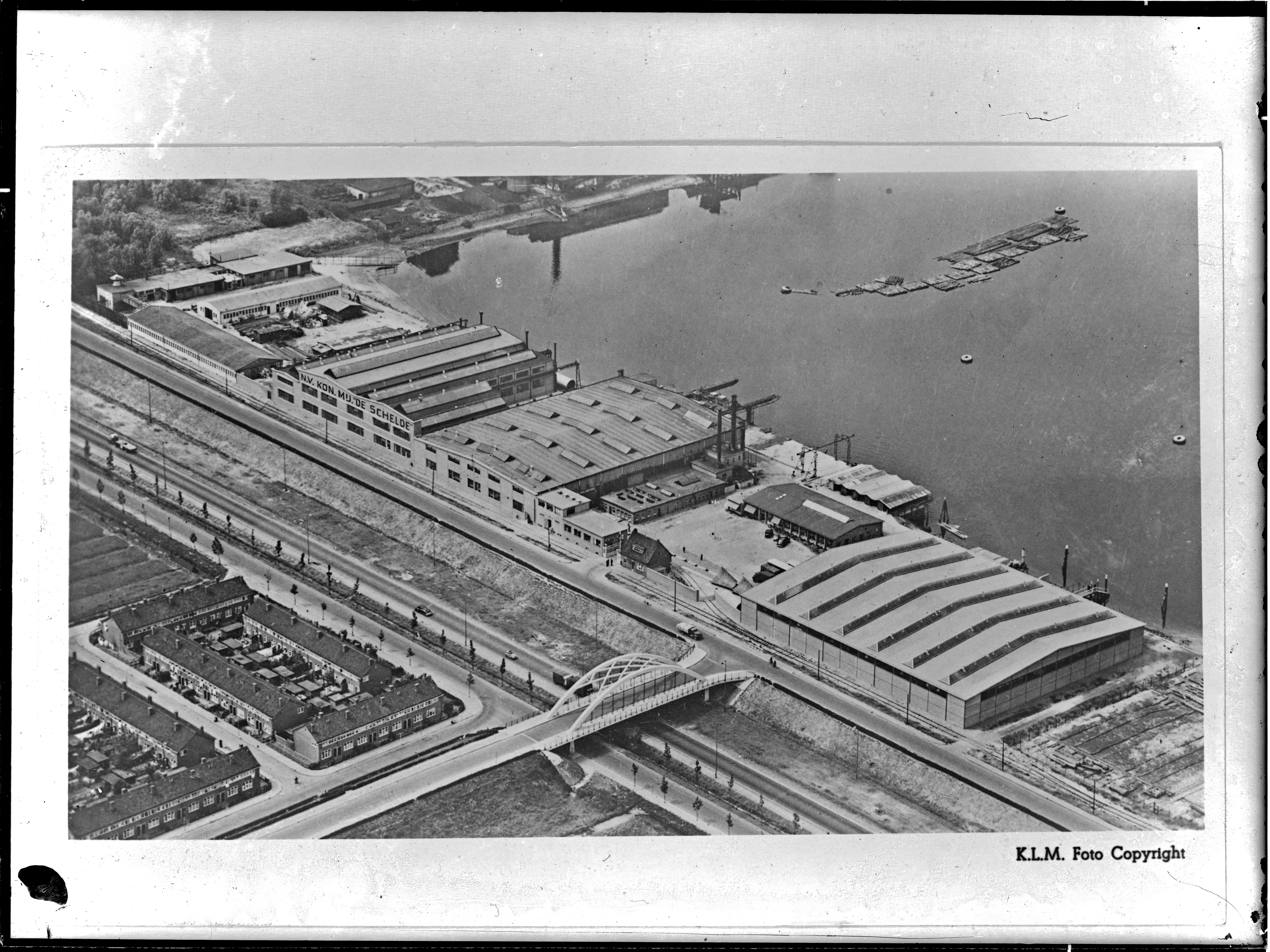 Zie ook 552_405837. Tegenwoordig Mijlweg maar vroeger Kilkade geheten. De KMS was dan ook voorheen aan de Kilkade nummer 11 gevestigd. Hoe en wanneer de naam Kilkade is ontstaan lees je o.a. in de Dordrechtsche Courant van 16-11-1918 waar verslag gedaan wordt van de gemeenteraadsvergadering van 28 juni 1918 en waar agendapunt 8 als volgt werd behandeld : "VIII. Voorstel van Burgemeester en Wethouders d.d. 22 Juni 1918, nr. 236/2F om aan den weg rond de zeehaven den naam te geven van ,‚Kilkade”. De heer Kolkman: Mijnheer de Voorzitter. Vindt U het gewenscht dien weg den naam te geven van Kilkade. Ik heb niets tegen den naam, ik vind het alleen wat kil, o, zoo kil. Is er niet een of anderen historischen naam voor te vinden, in verband met de zeevaart? De Willem Barenzkade of zo iets. De Voorzitter: Burgemeester en wethouders hebben gemeend dien weg een sprekenden naam te moeten geven. De weg loopt tot de Kil. Misschien is er later wel eens gelegenheid om den naam te veranderen. De heer Kolkman: Zou er niet een of anderen historischen naam voor te vinden zijn geweest? 't is zoo kil! De Voorzitter: Ik geef toe dat het een bootje kil is. Het voorstel wordt zonder hoofdelijke stemming goedgekeurd.
