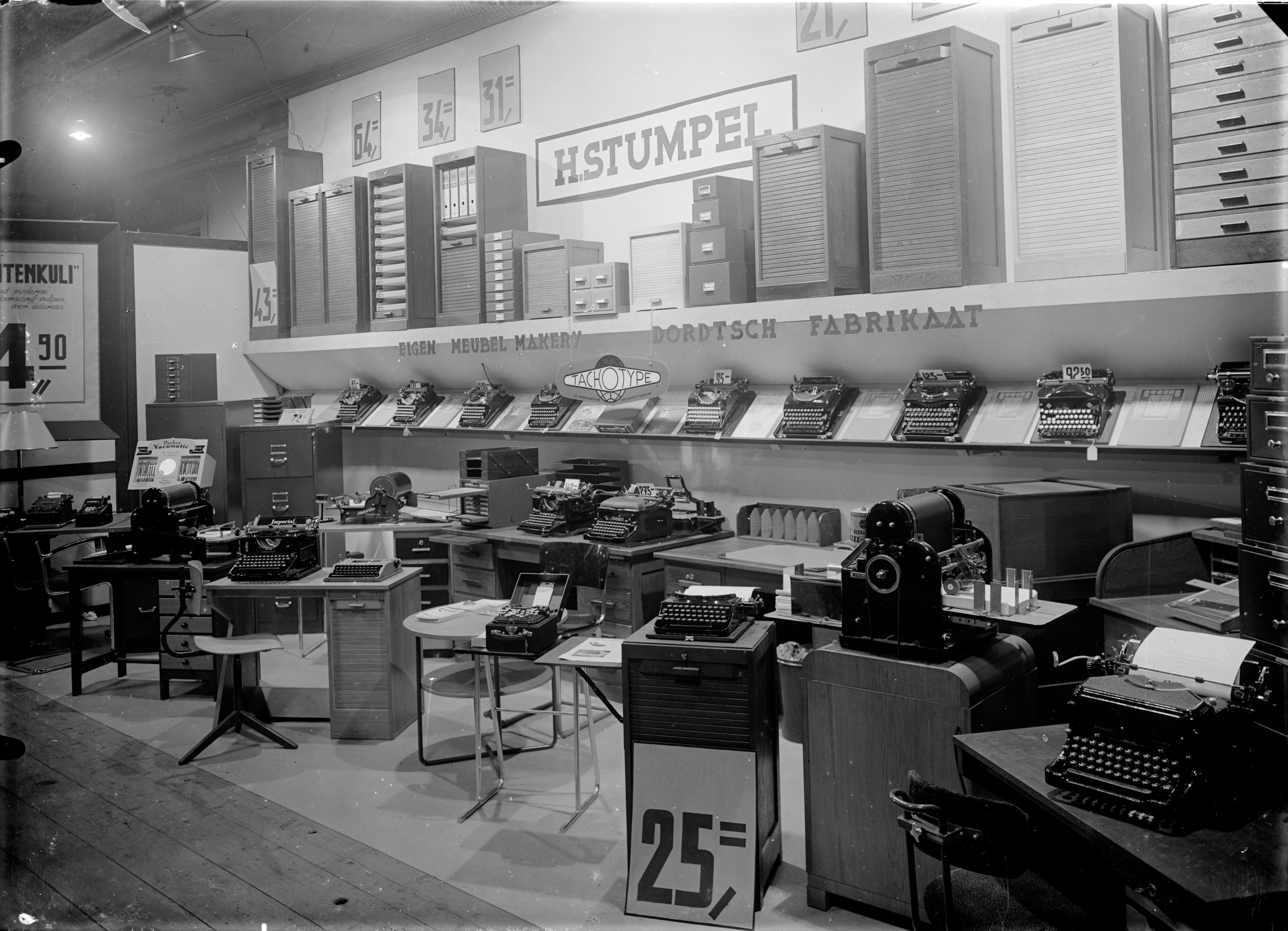 H. Stumpel (eigen meubelmakerij, Dordtsche fabrikaat), typemachines (Parker Vacumatie)