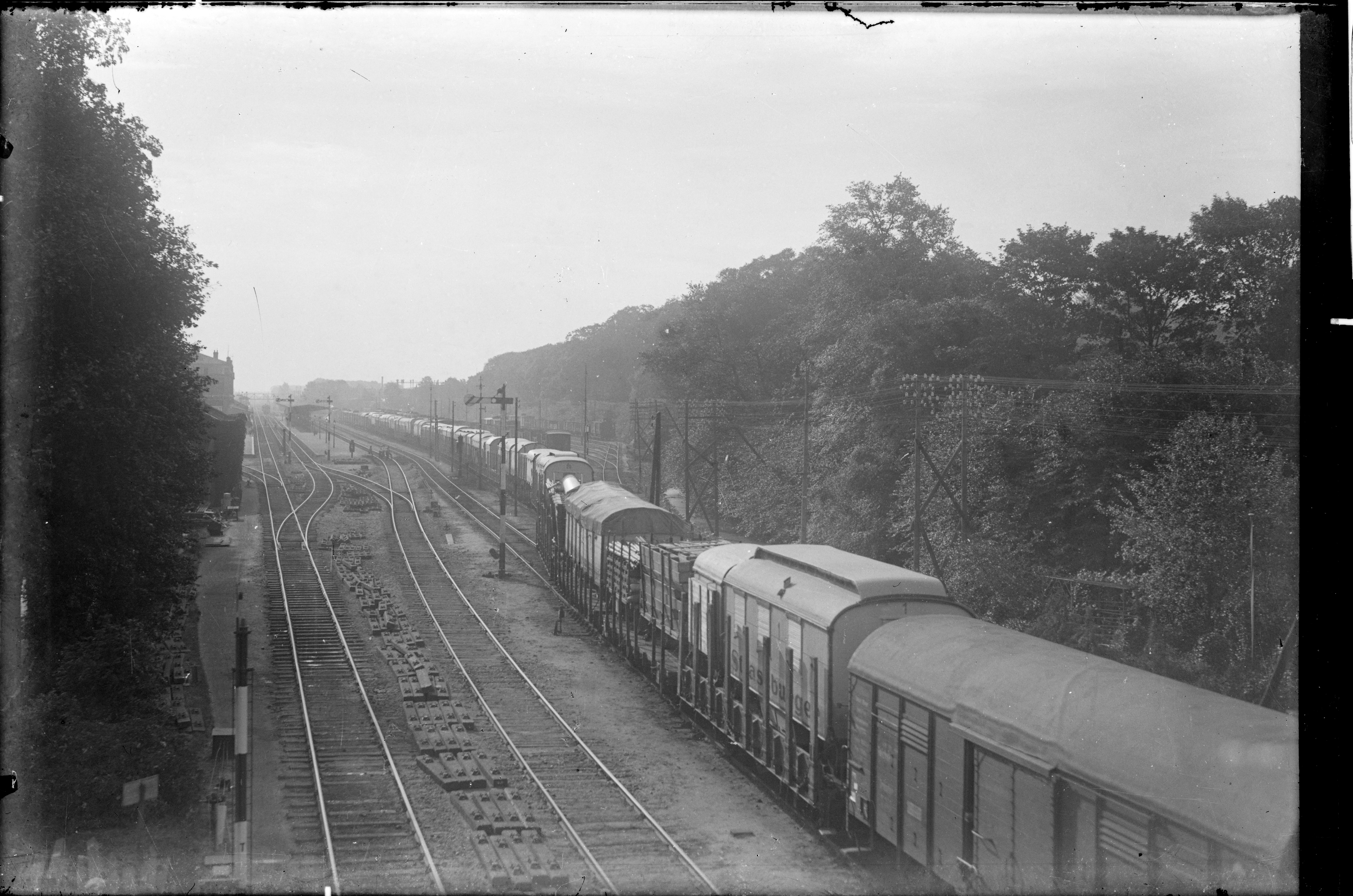 - Spoorwegemplacement vanaf de voetgangersbrug aan de Spuiweg naar het oosten.