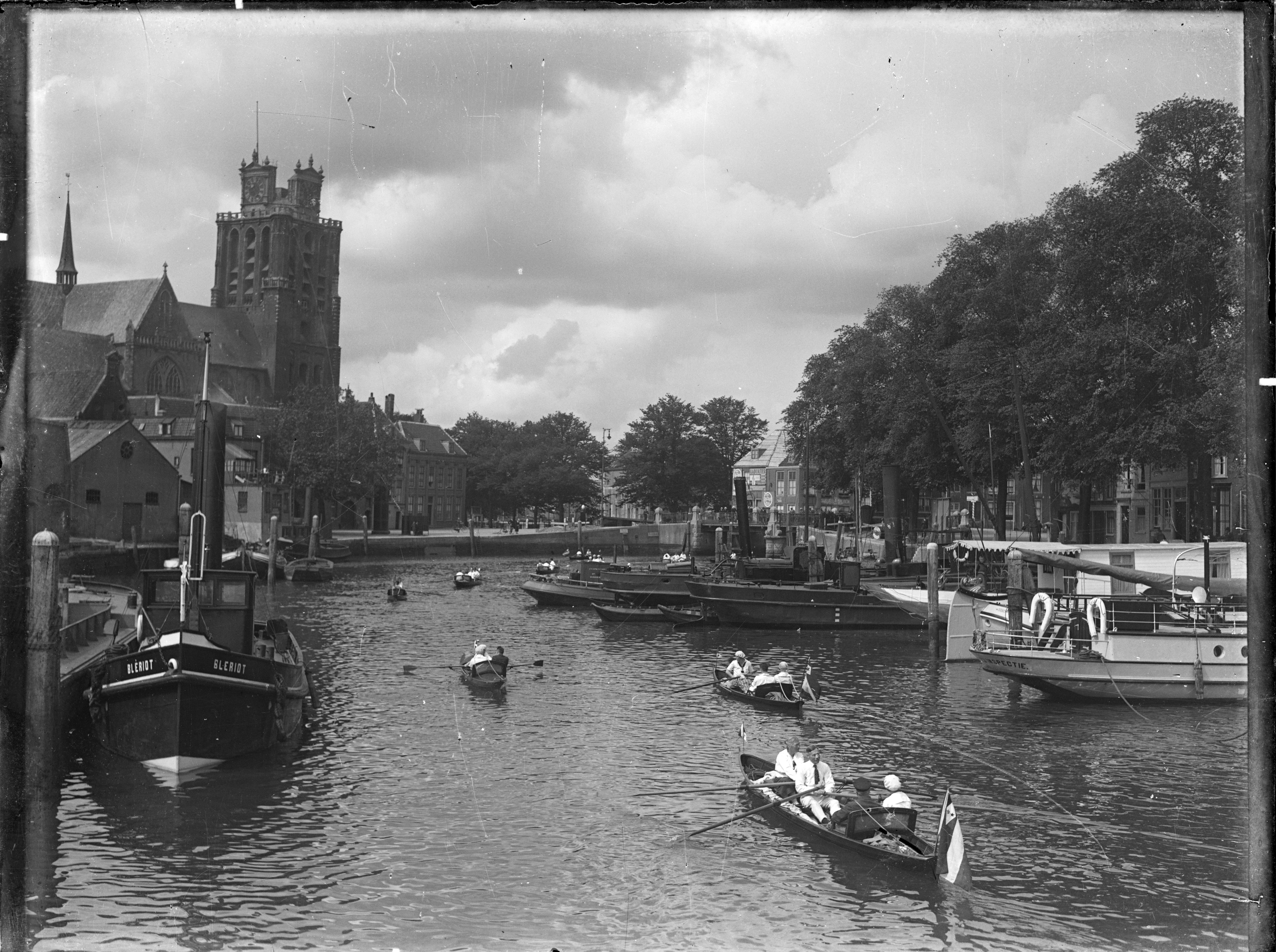 De Nieuwe Haven vanaf de Lange IJzerenbug richting Houttuinen, Grote Kerk en …