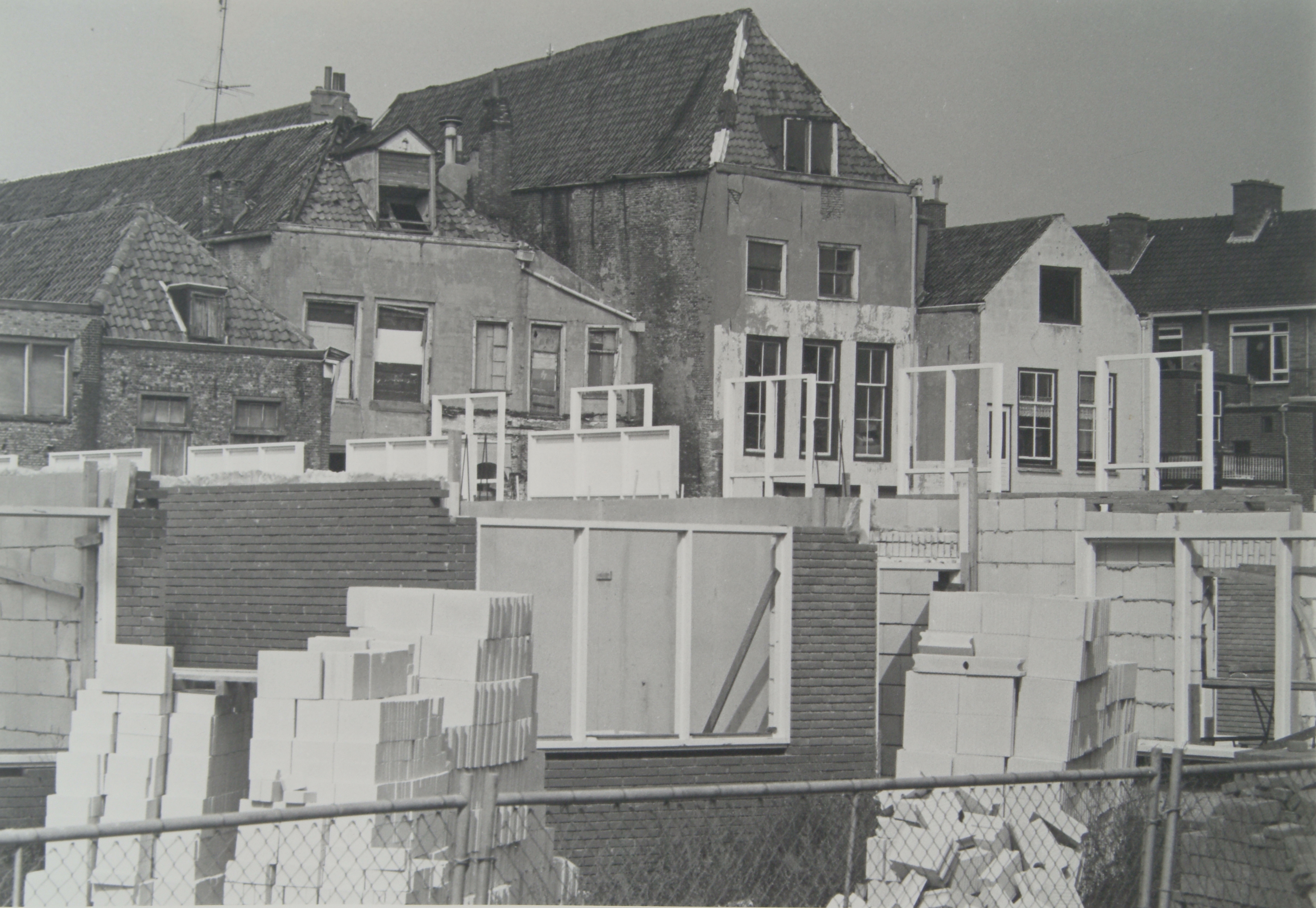 Nieuwbouw aan het Nieuwkerskplein en gezicht op de achterzijde van huizen aan de …