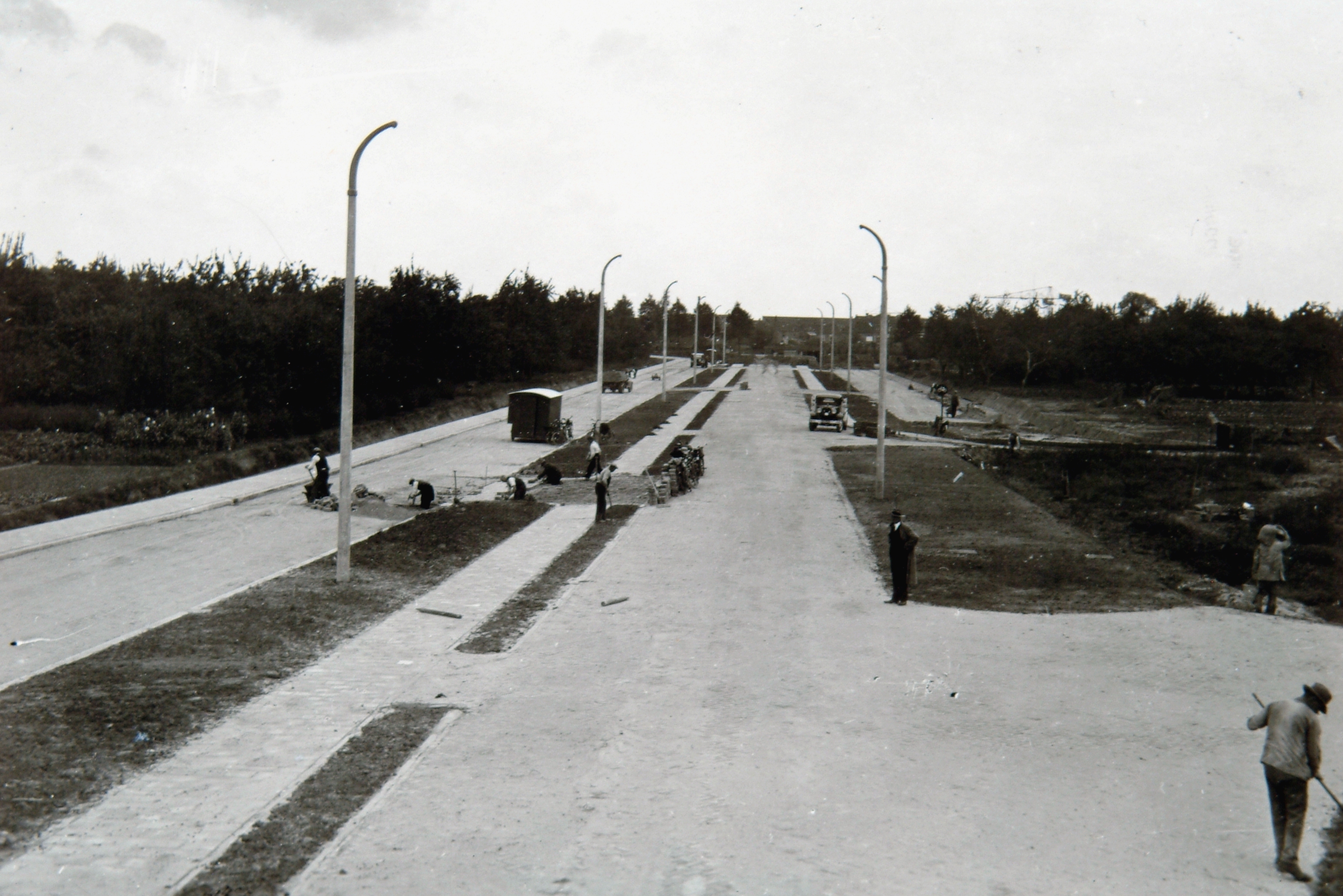 - De aanleg van de Hugo de Grootlaan gezien in de richting van de Straatweg.