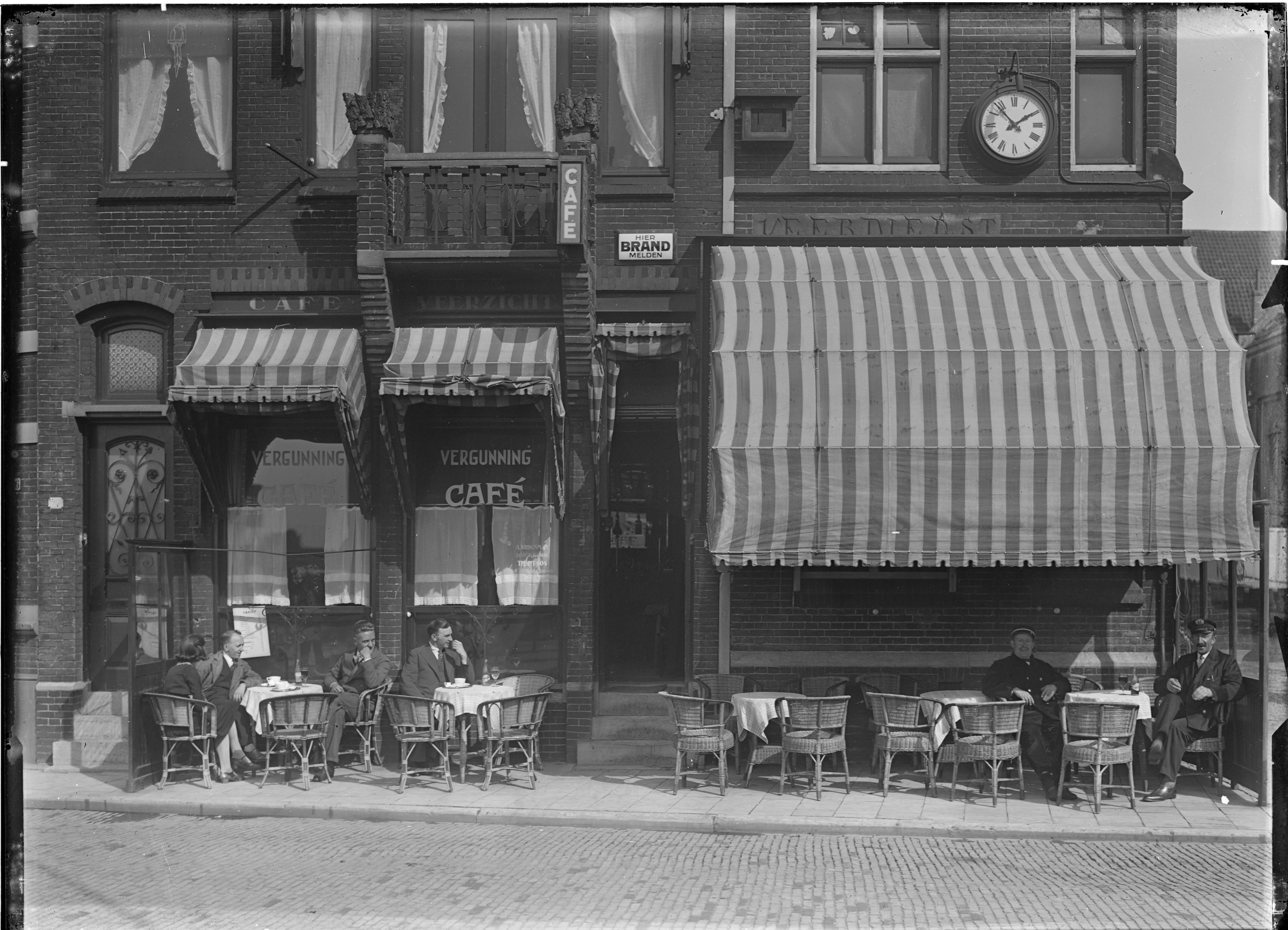 - Terras voor café Veerzicht van A. Krijgsman aan de Buiten Walevest bij het Zwijndrechts veer.
