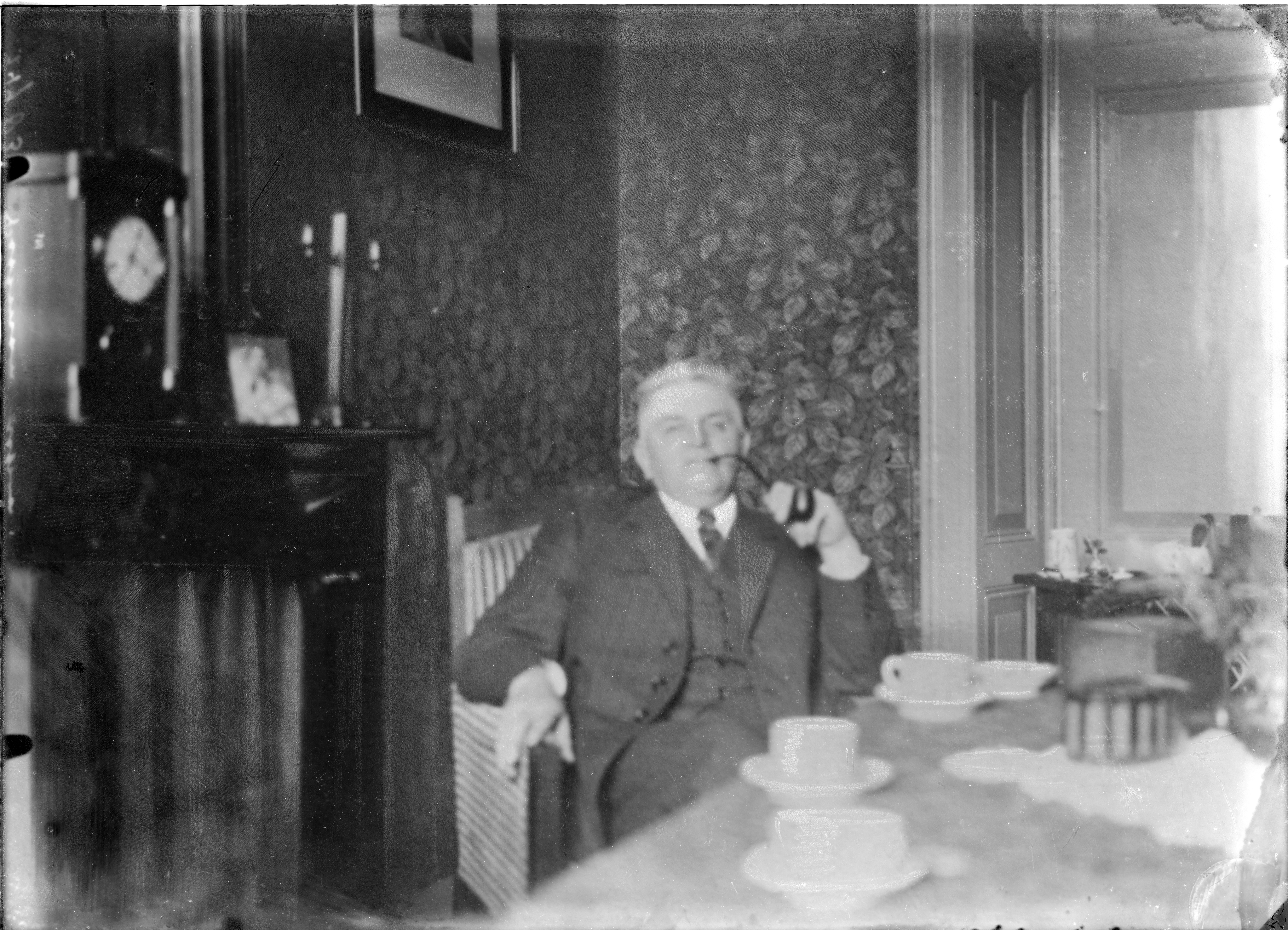 zittende man met pijp in huiskamer (pijprokende man, pijproker, schouw met klok) ----- 25-03-1935 fotonummer 24783 Pestman Mauritsstraat 24rood [bron: www.dordtenaZOEKer.nl] ----- ADRESBOEK 1930 L. Breestraat 8 G. Pestman, boekhouder ---- ADRESBOEK 1938 Raamstraat 7 G. Pestman, acc. en belast.adviseur