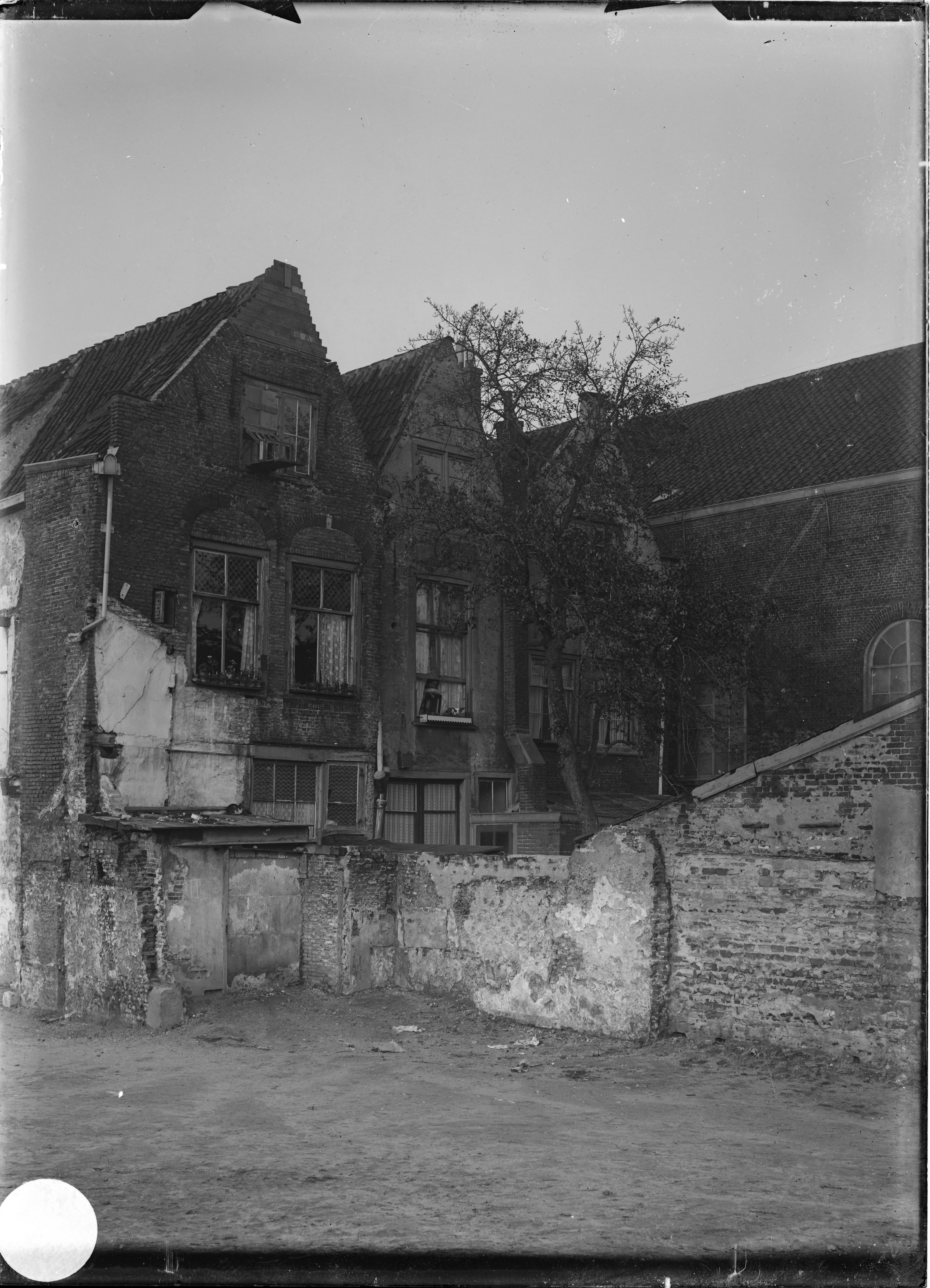Achterzijde van panden in de Lange Breestraat, gezien vanaf de Bagijnestraat. Het …