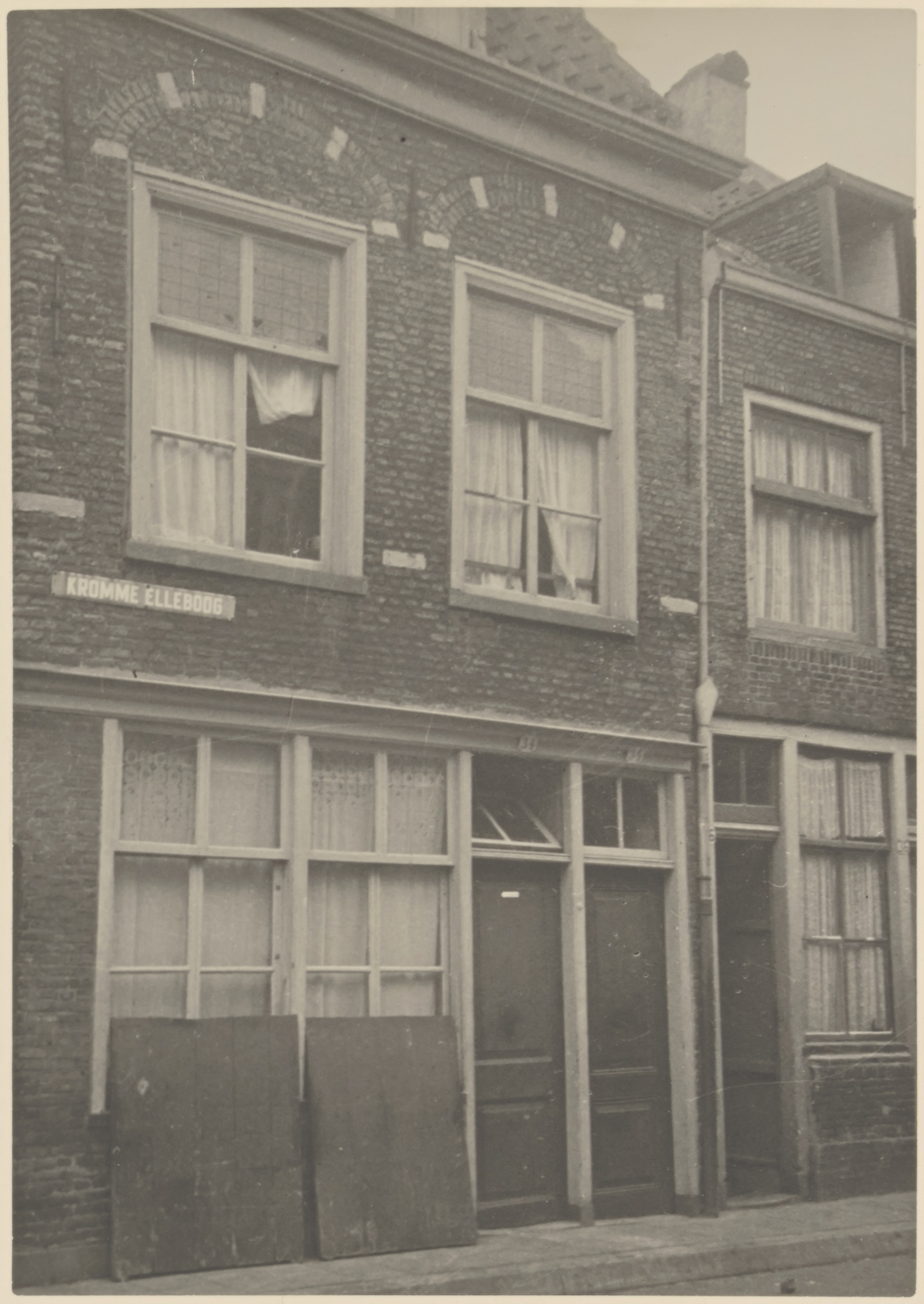 - Pui van een huis op de noordoosthoek van de Kromme Elleboog en de Dwarsgang.
