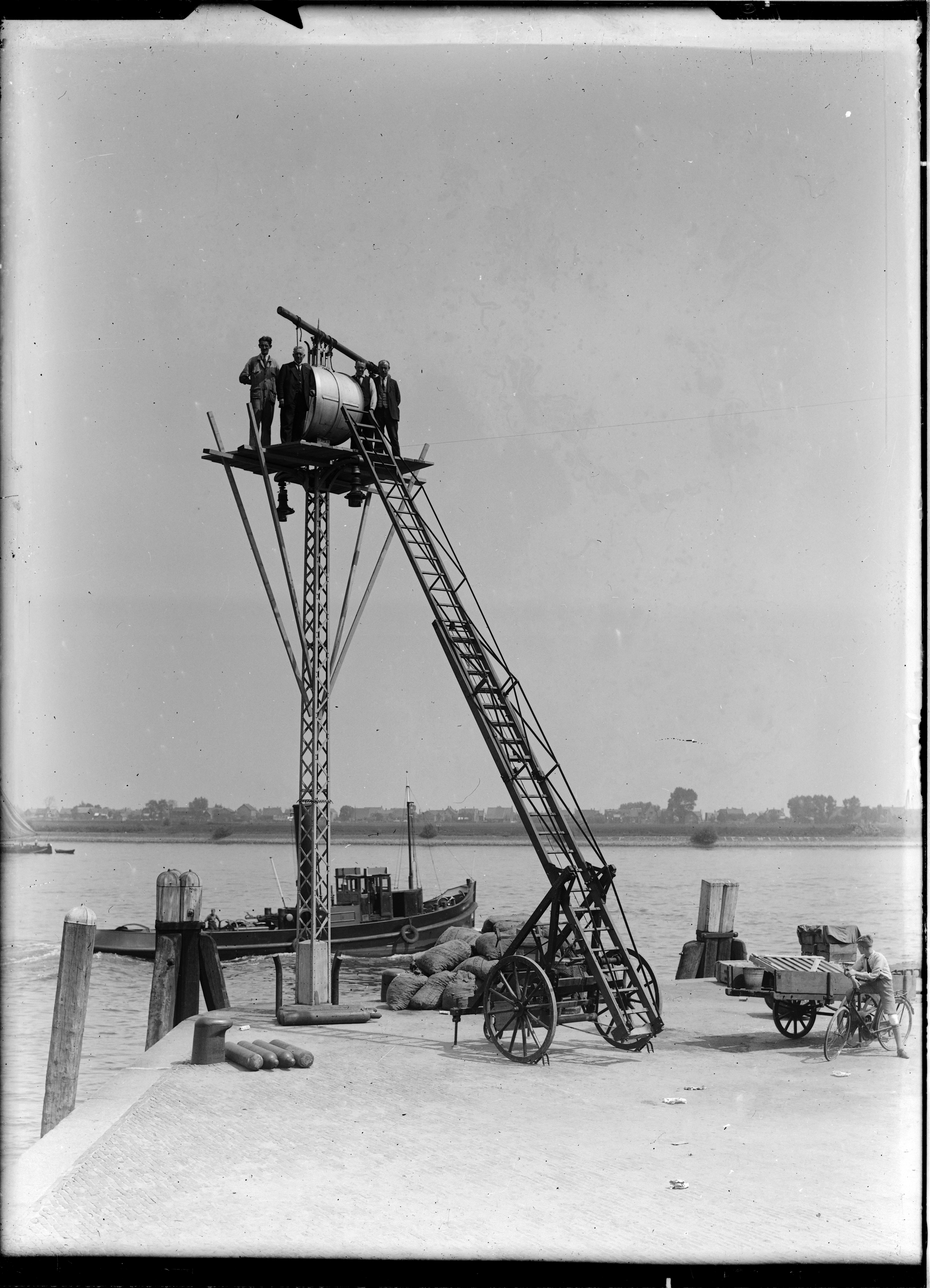- arbeiders / werklieden dukdalven / meerpalen handkarren klokken / uurwerken ladderwagens stoomsleepboten