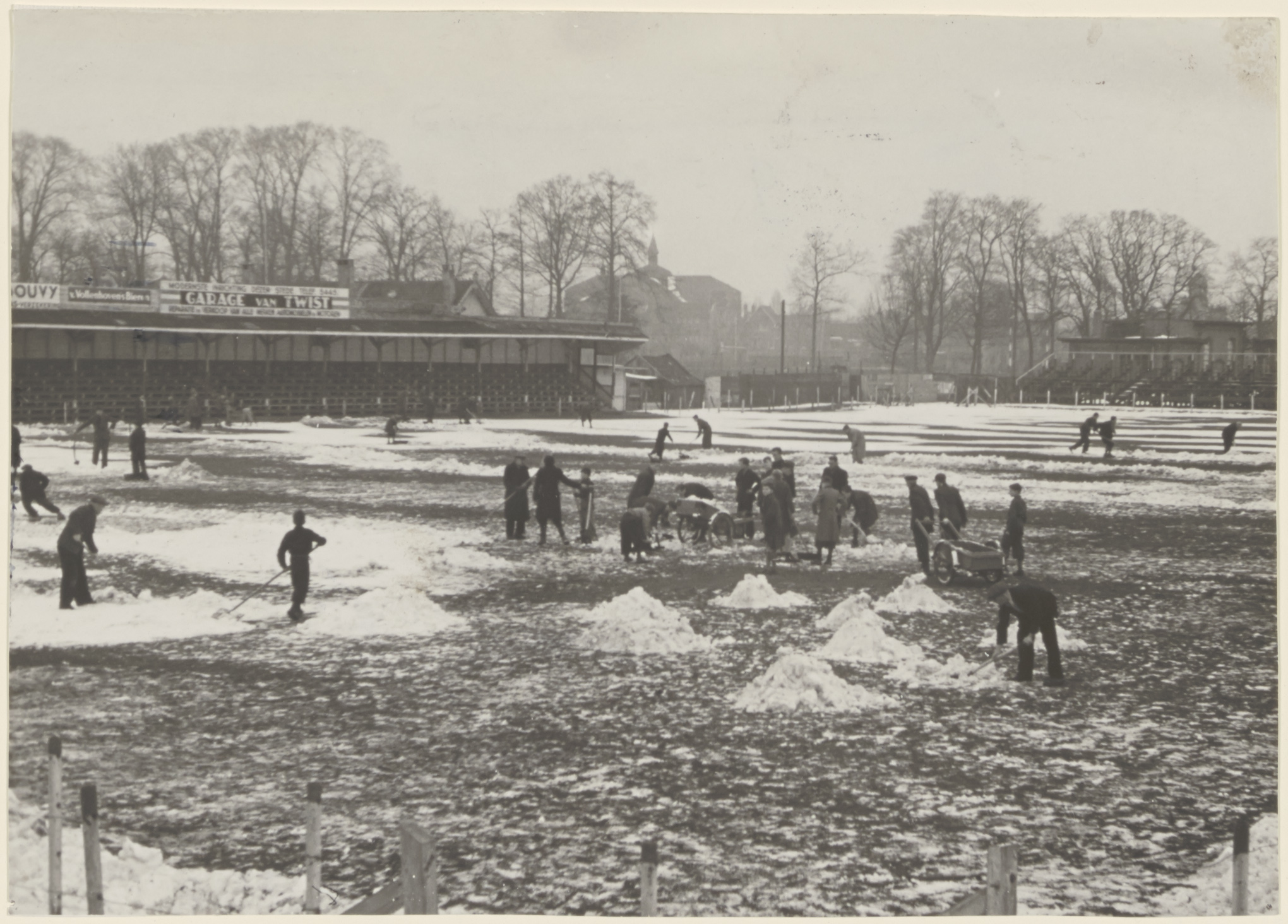 - handkarren sneeuw tribunes voetbalvelden