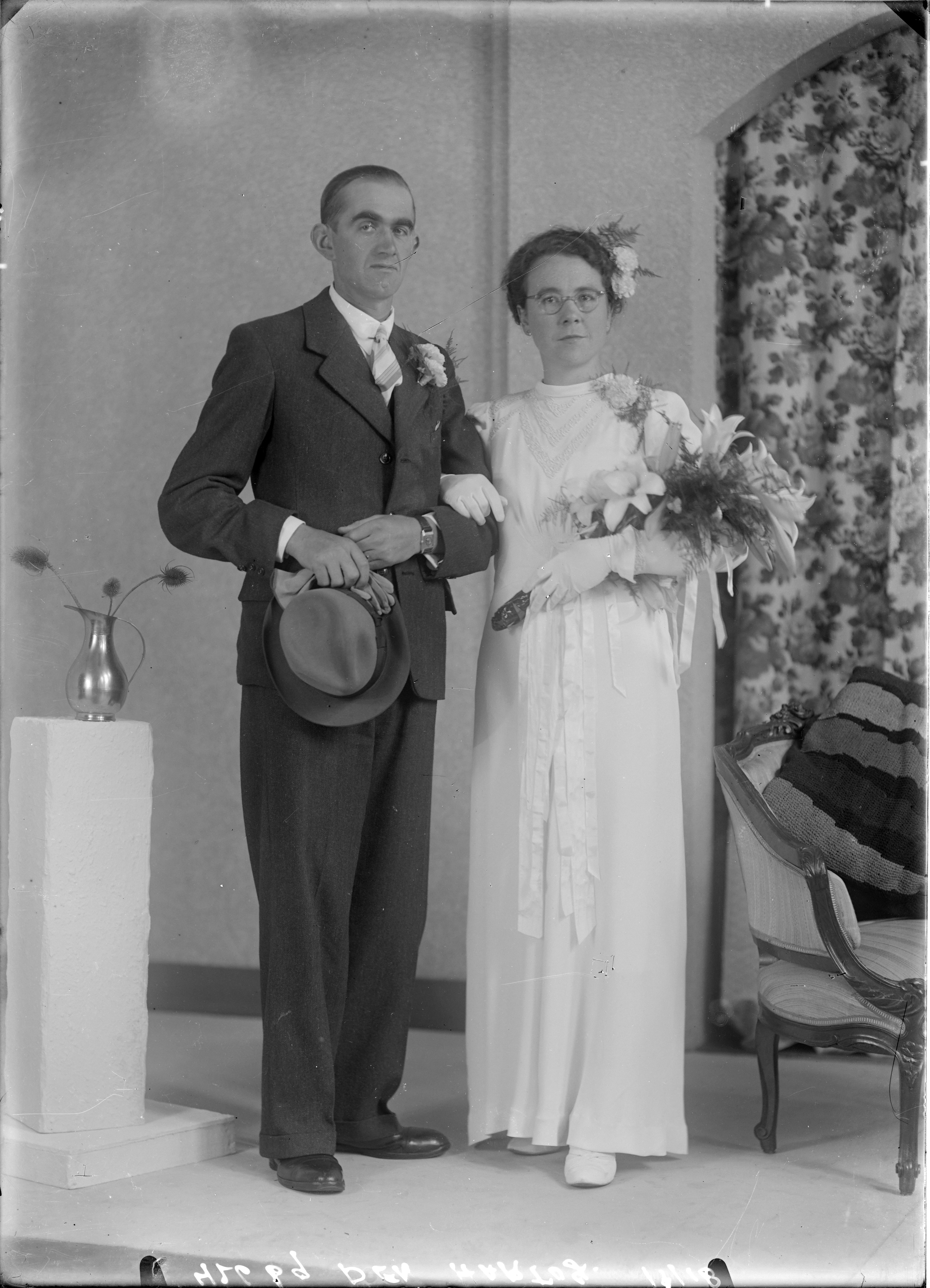 bruidspaar Jan den Hartog en Leentje Bakker, huwelijksfoto, staande man en vrouw ----- 03-10-1944 fotonummer 42669 den Hartog, Oranjelaan 61 [bron: www.dordtenaZOEKer.nl] ----- WONINGKAART 1944 Oranjelaan 61 Jan den Hartog / Leentje Bakker