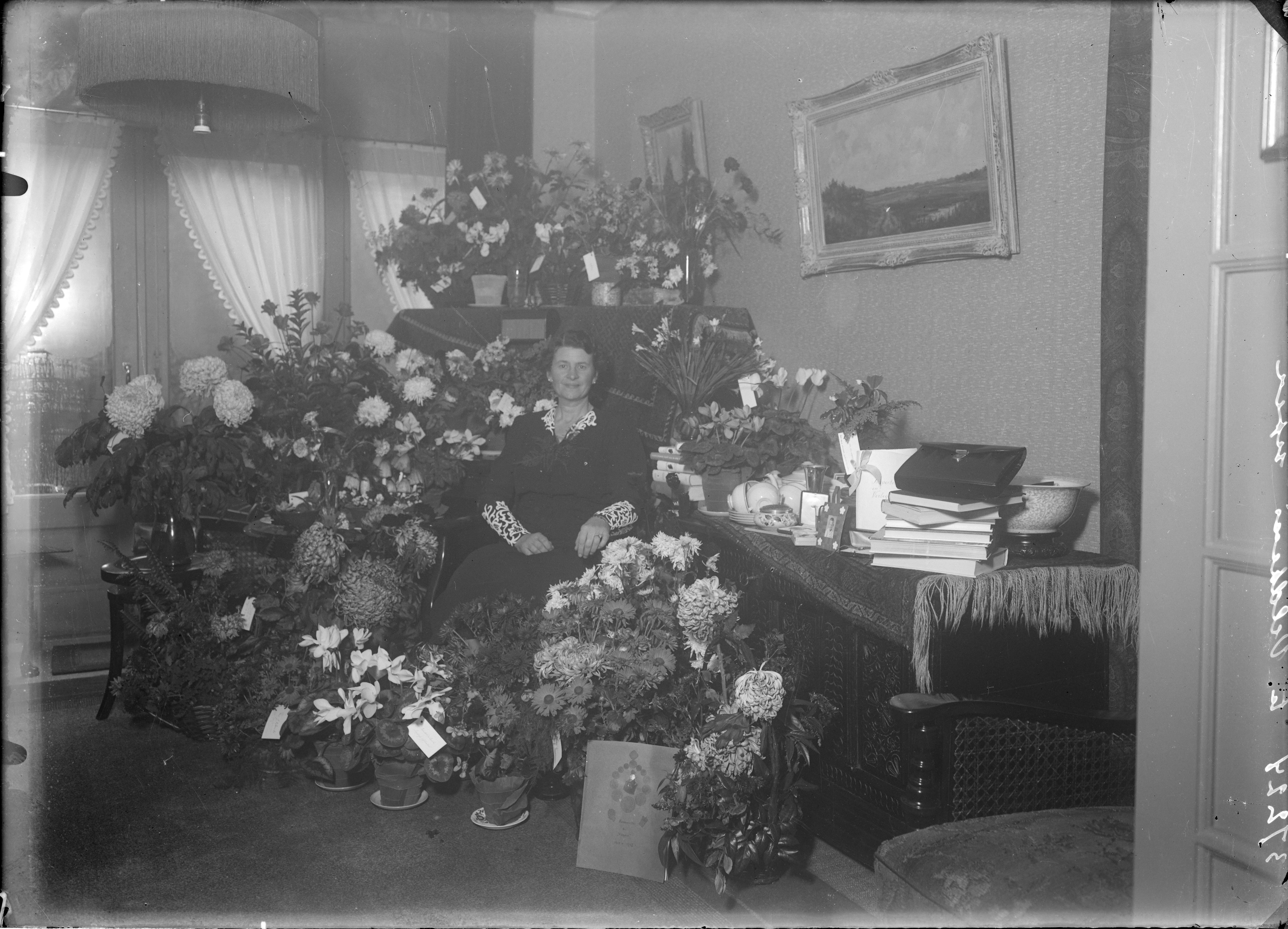 pag. 1790 (37225 te VELDHUIS sepia) vrouw tussen geschenken en bloemen; '1917-1942'; ZIE 309_109421