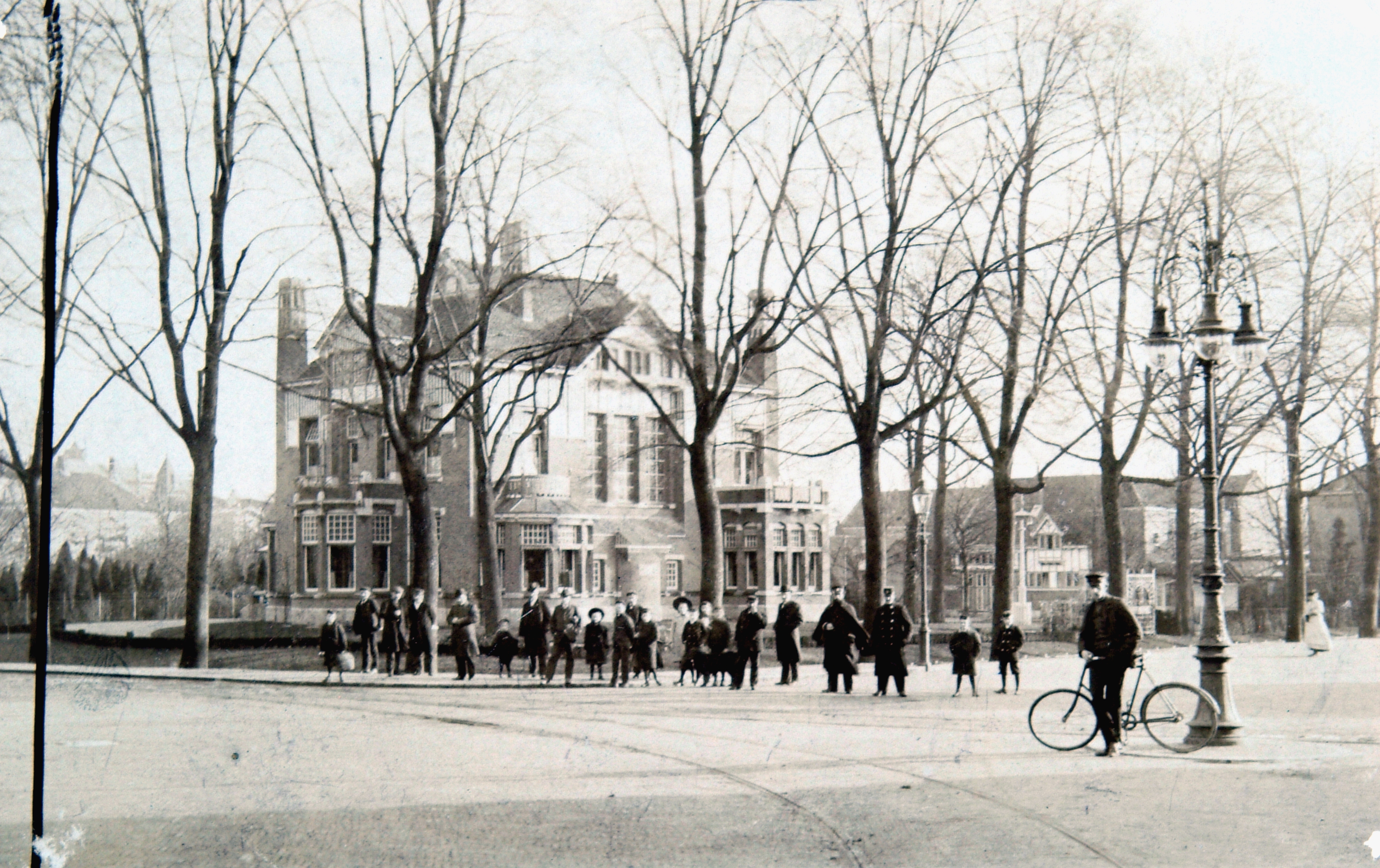 - Villa Simpang op de Stationsweg werd in 1944 door bommen verwoest. Op de voorgrond zijn rails van de paardentram zichtbaar.