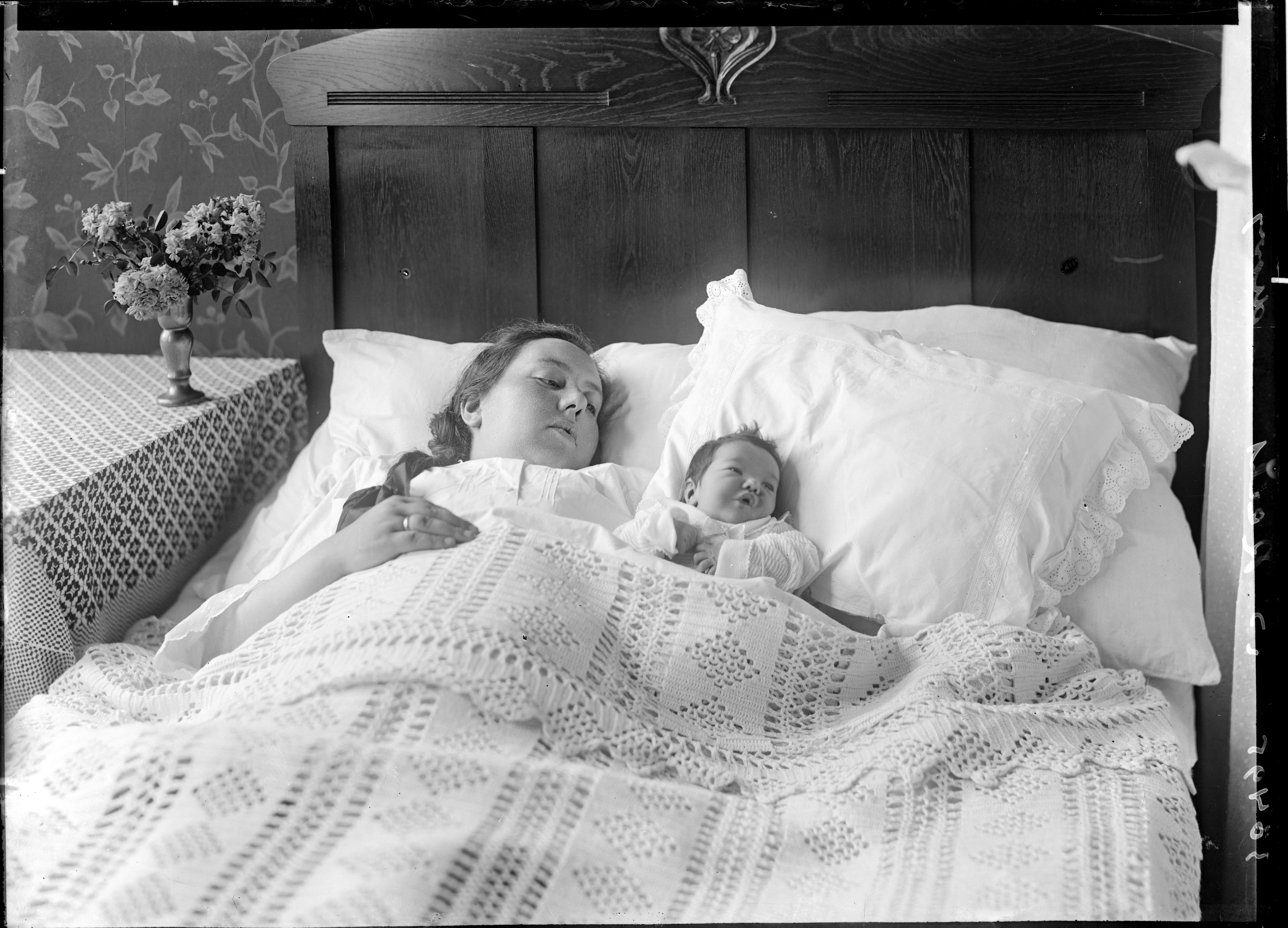 nr. 36495 de Reus (?) ----- vrouw met baby in bed ---- (NB. fotonummer klopt niet met de boeken van Beerman)