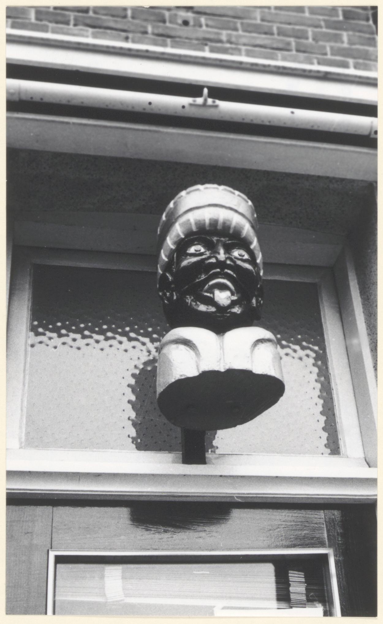 Gaper aan de gevel van drogisterij M. van der Zee op de hoek van de Blekersdijk en de Ferdinand Bolsingel.