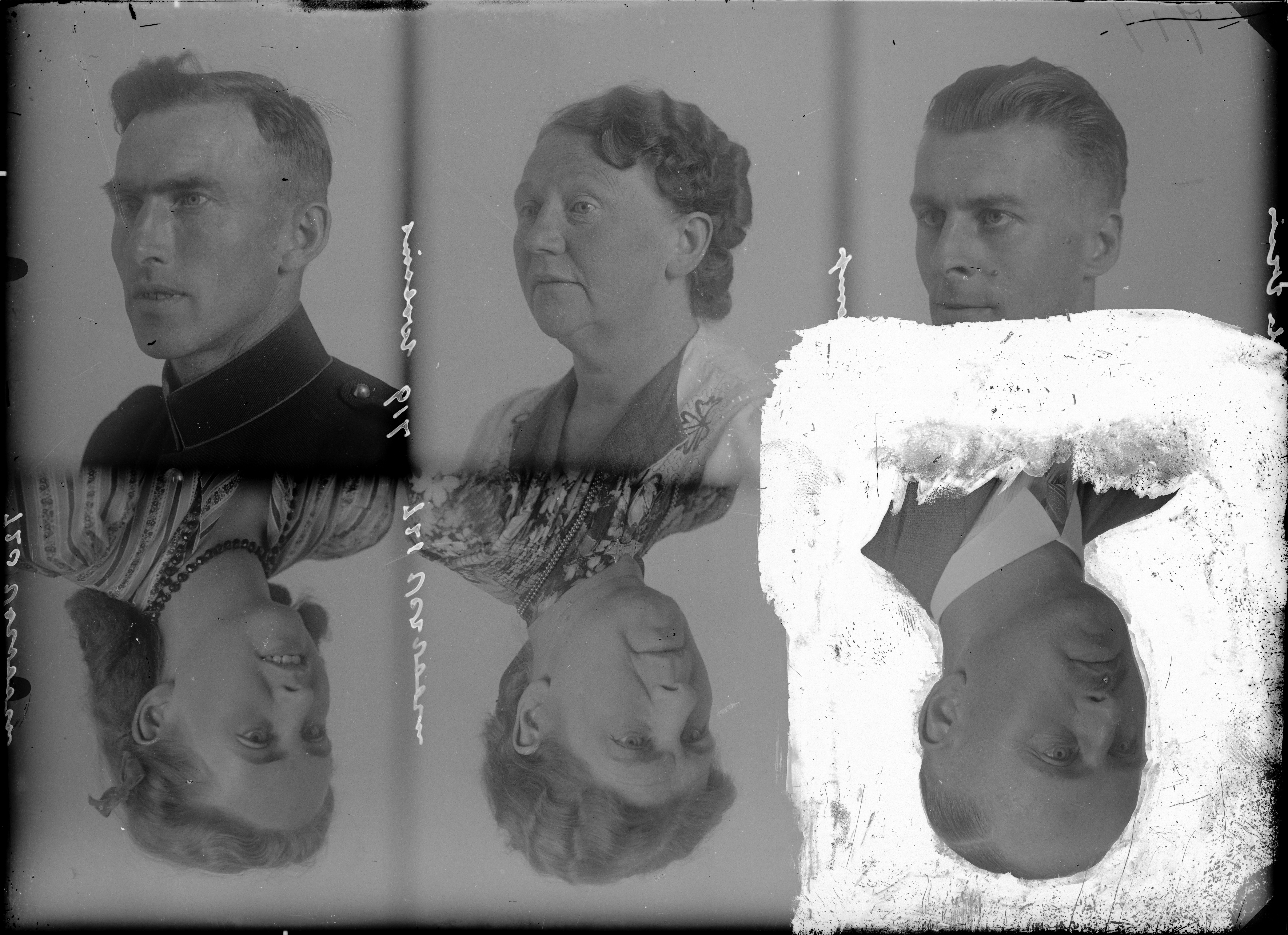 309_114163 (pag. 2027/2197) ---- pasfoto's 1941, nrs. 717 de Vries (man), nr. 718 Kemp (vrouw), nr. 719 Wolsink, Vrieseplein (man in uniform), nr. 720 Vervoorn (vrouw), nr. 721 Vervoorn (vrouw), nr. 722 Brukker, Ceramstraat 110 (man); ---- (bron: dordtenazoeker.nl)