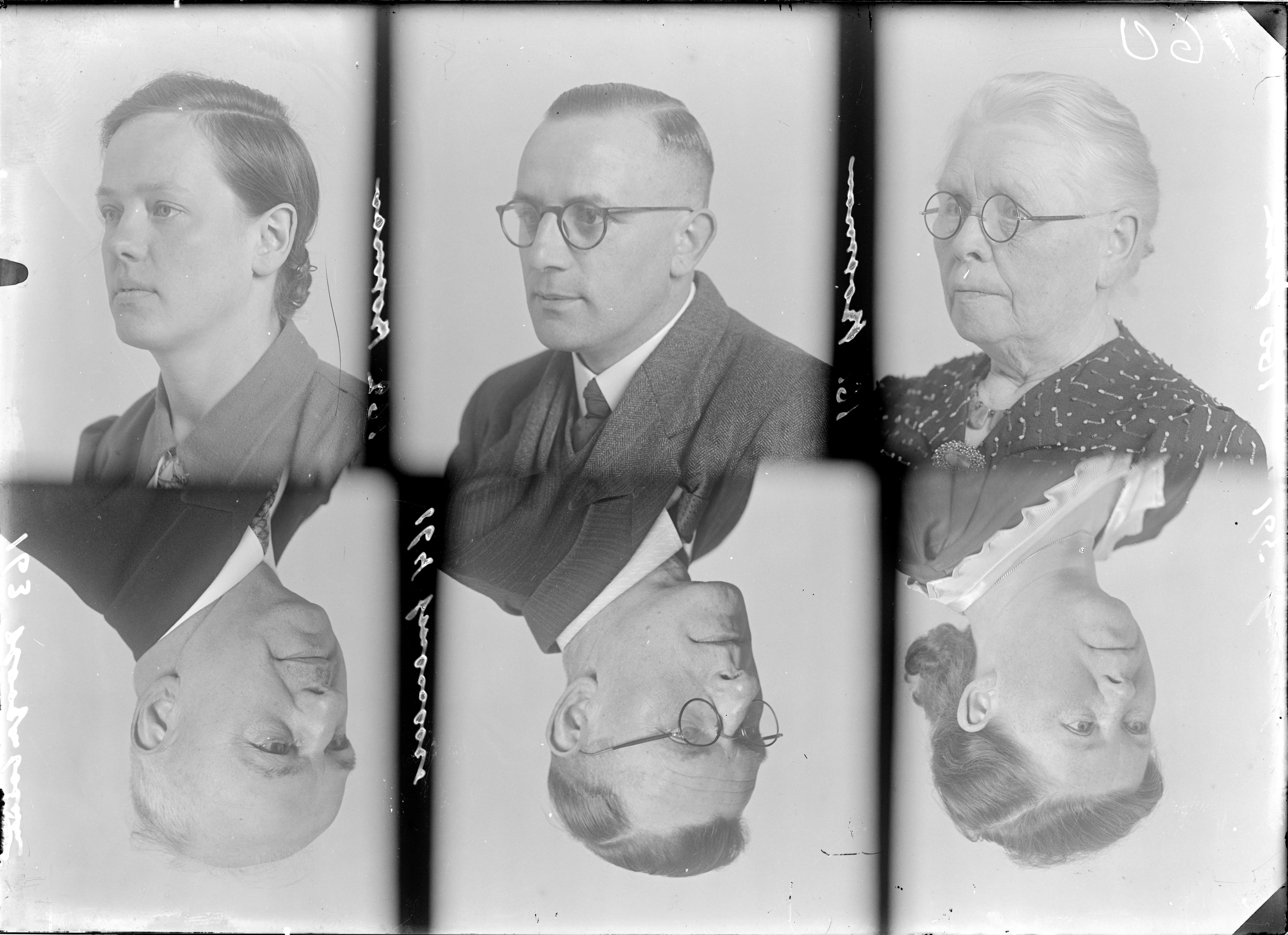 pasfoto's 1941, nrs. 160 Joha (vrouw met bril), nr. 161 Bosman (man met bril), nr. 162 Bosman (vrouw), nr. 163 Hoogeboezem (man), nr. 164 Smeulers (man met bril), nr. 165 Smeulers (vrouw); ---- (bron: dordtenazoeker.nl)