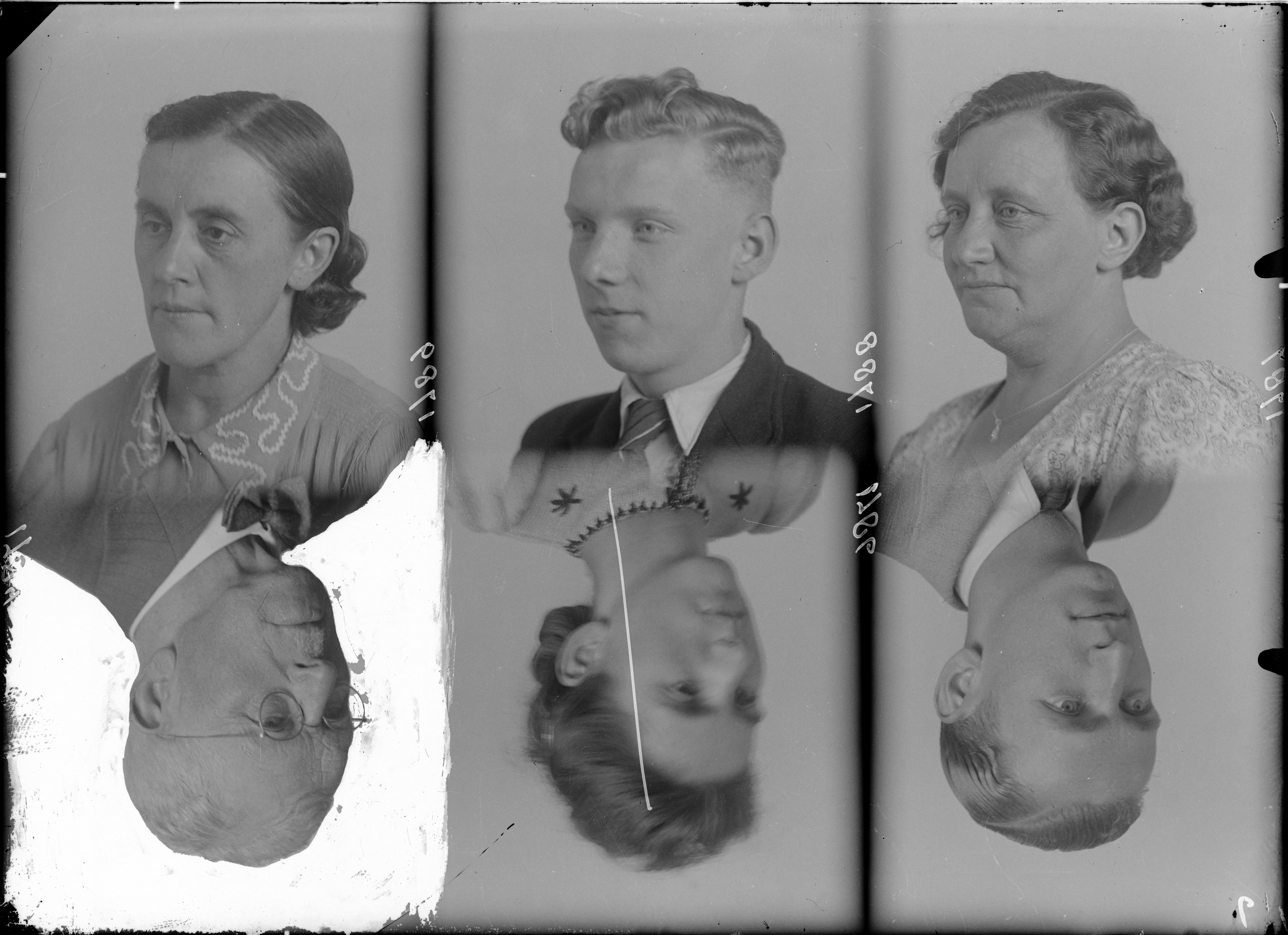 pasfoto's 1941, nrs. 1784 Germ (man met bril), nr. 1785 Meijer (vrouw; wazige foto), nr. 1786 NN (man), nr. 1787 Berlijn (vrouw), nr. 1788 Jansen (man), nr. 1789 van 't Hoofd (vrouw); ---- (bron: dordtenazoeker.nl)