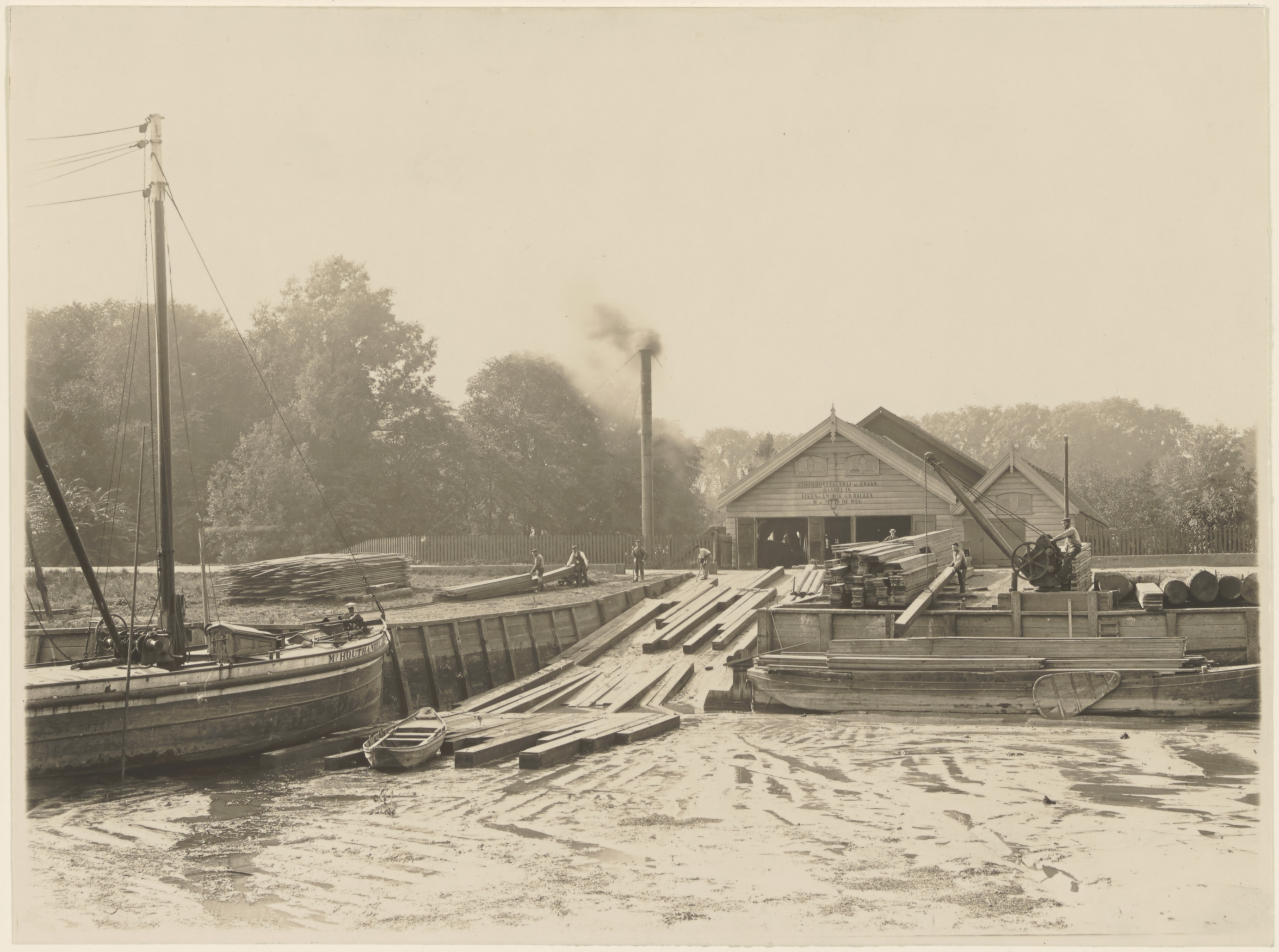 De stoomhoutzagerij De Zwaan aan de zuidzijde van de Noordendijk, tussen de Groenedijk …