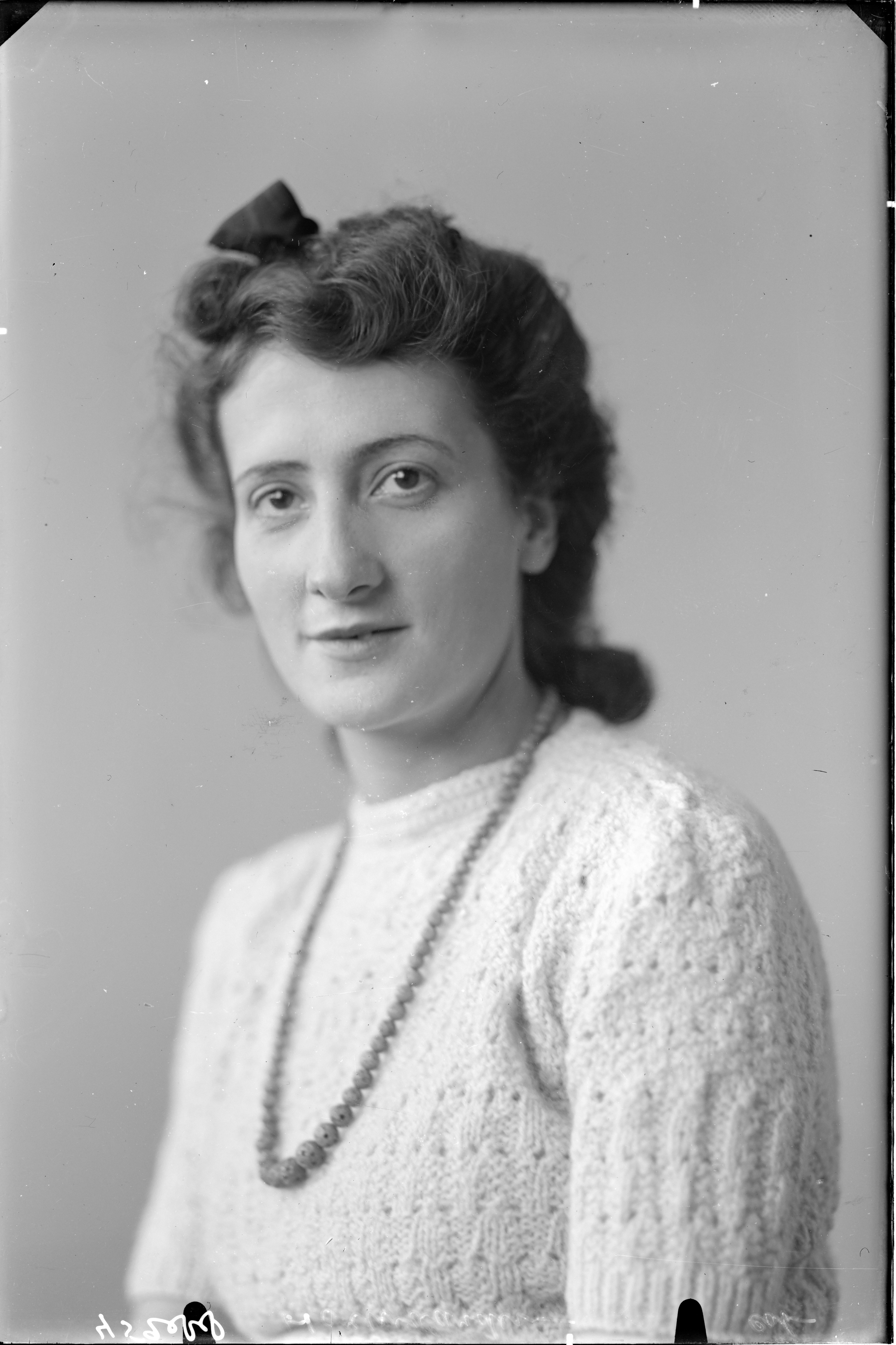 vrouw (ketting, gebreid truitje) ----- okt./nov 1945 fotonummer 445288 Herwaarden Steegoversloot 33 [bron: www.dordtenaZOEKer.nl] ----- WONINGKAART 1945 Steegoversloot 33 Adriana van Herwaarden (huishoudster)