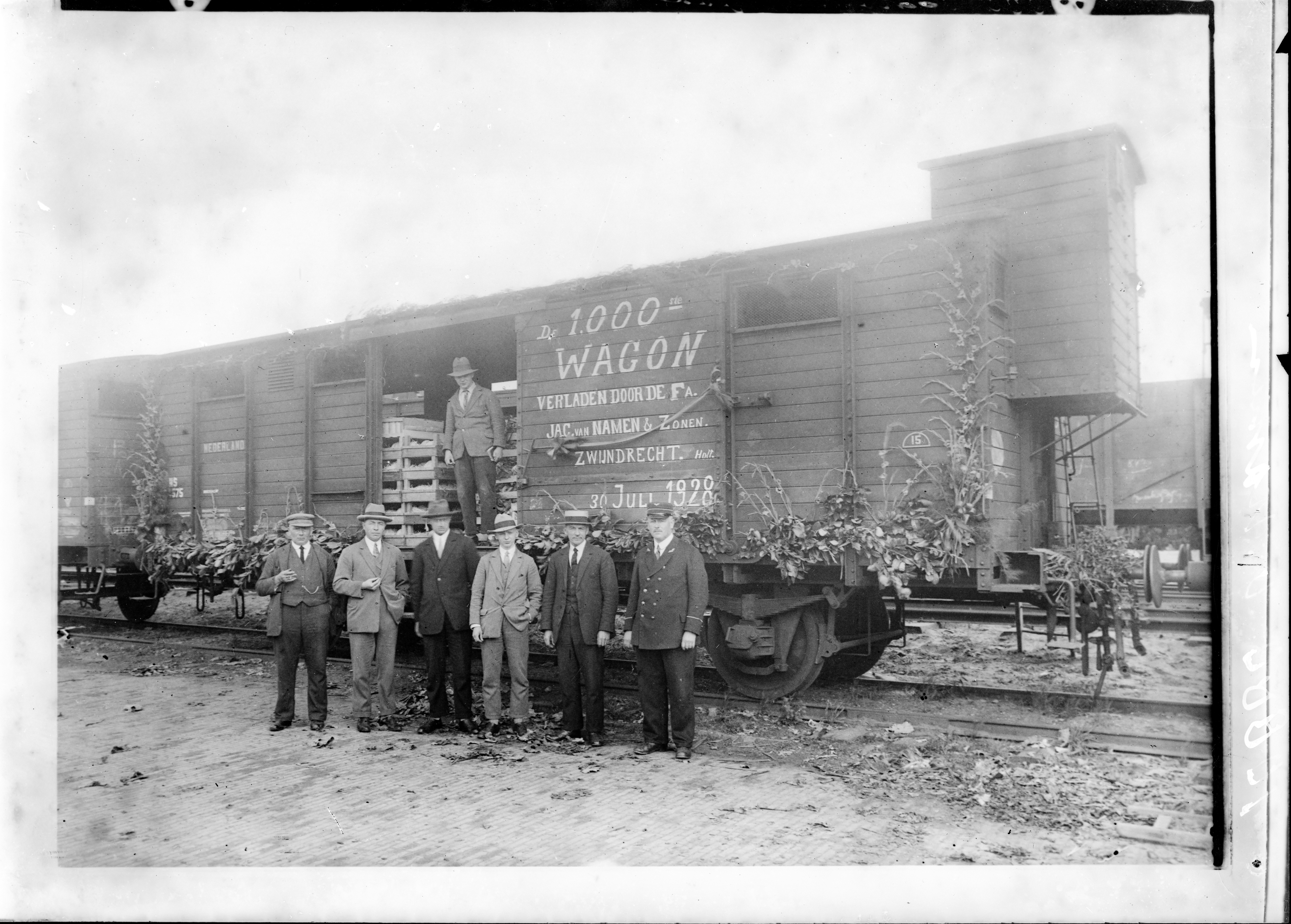 De 1000ste wagon verladen door de fa. Jac. van Namen & Zonen te Zwijndrecht, 30 juli 1928.