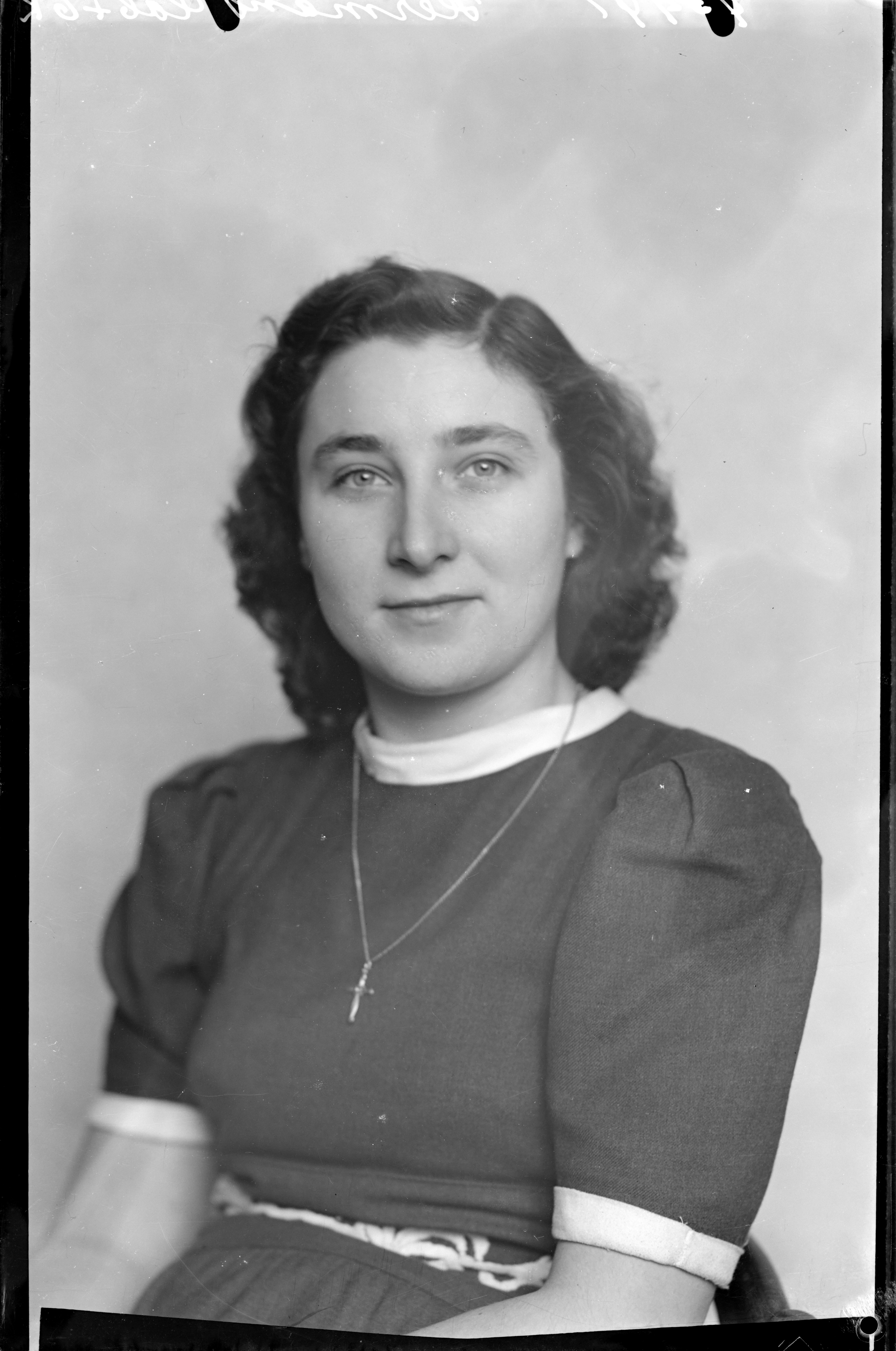 vrouw (wit kraagje, kettting met kruisje) ---- dec 1945 fotonummer 45491 Hermans Rozenhof 40 [bron: www.dordtenaZOEKer.nl] ---- WONINGKAART 1946 Rozenhof 40zw Gertrud Maria Hermans (naar Vaals)