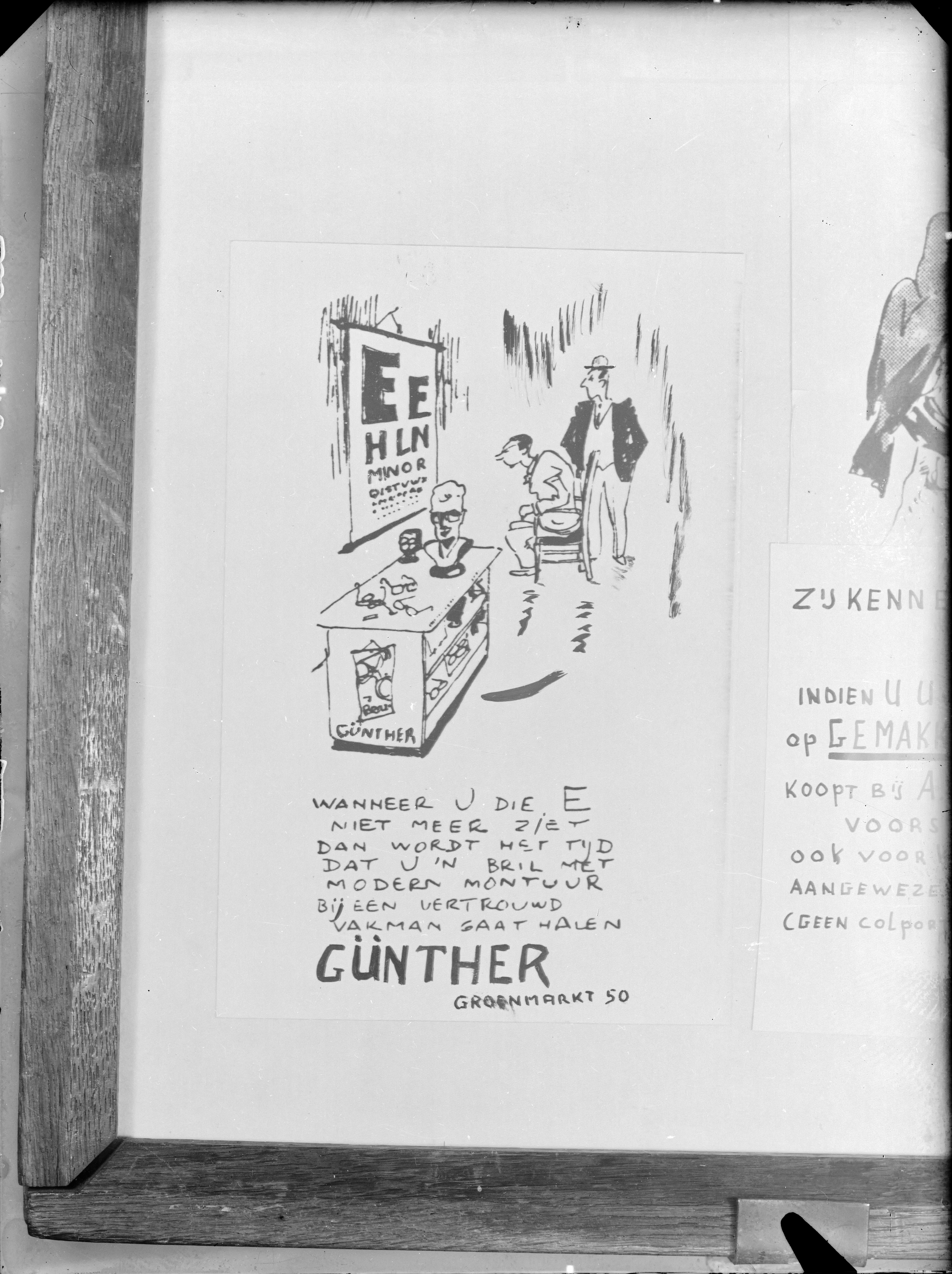 [RECLAME] Wanneer U die E niet meer zie dan wordt het tijd dat U 'n bril met modern montuur bij een vertrouwd vakman gaat halen GÜNTHER, Groenmarkt 50