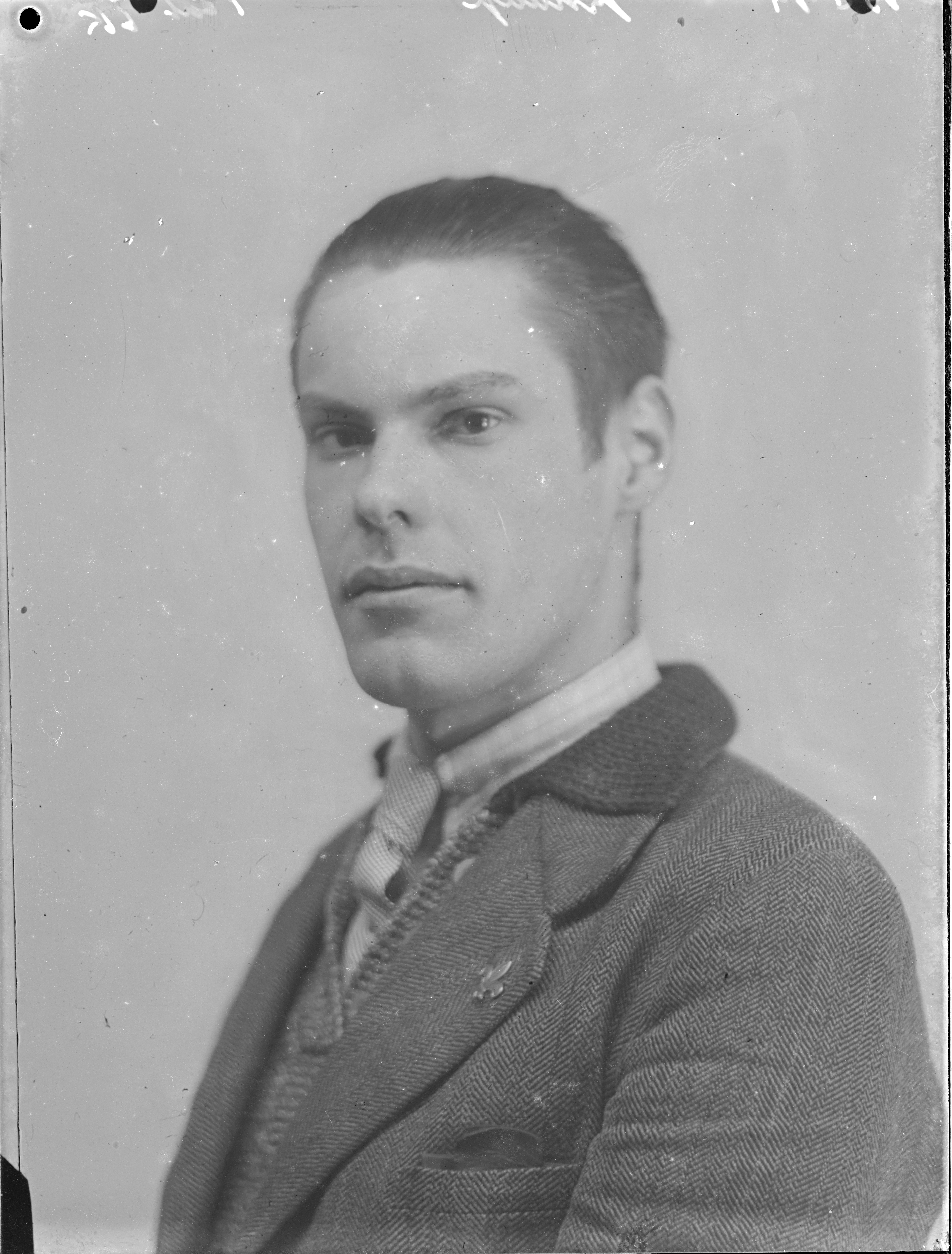 man (stropdas, speldje met franse lelie) ---- 09-02-1946 fotonummer 45844 v.d. Knaap Rotterdamscheweg 50 Delft [bron: www.dordtenaZOEKer.nl]