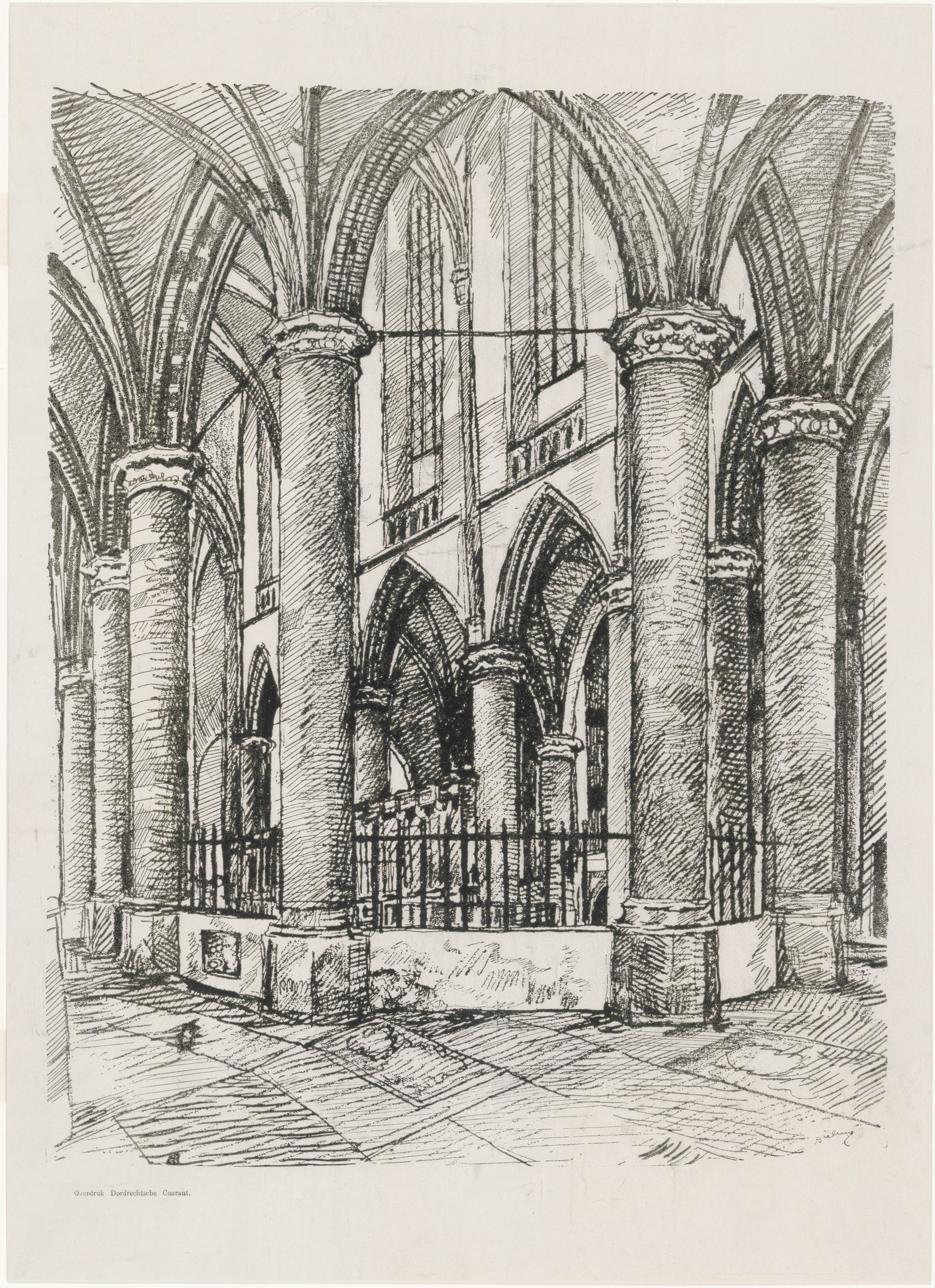 Pentekening, koorhek Grote Kerk te Dordrecht.