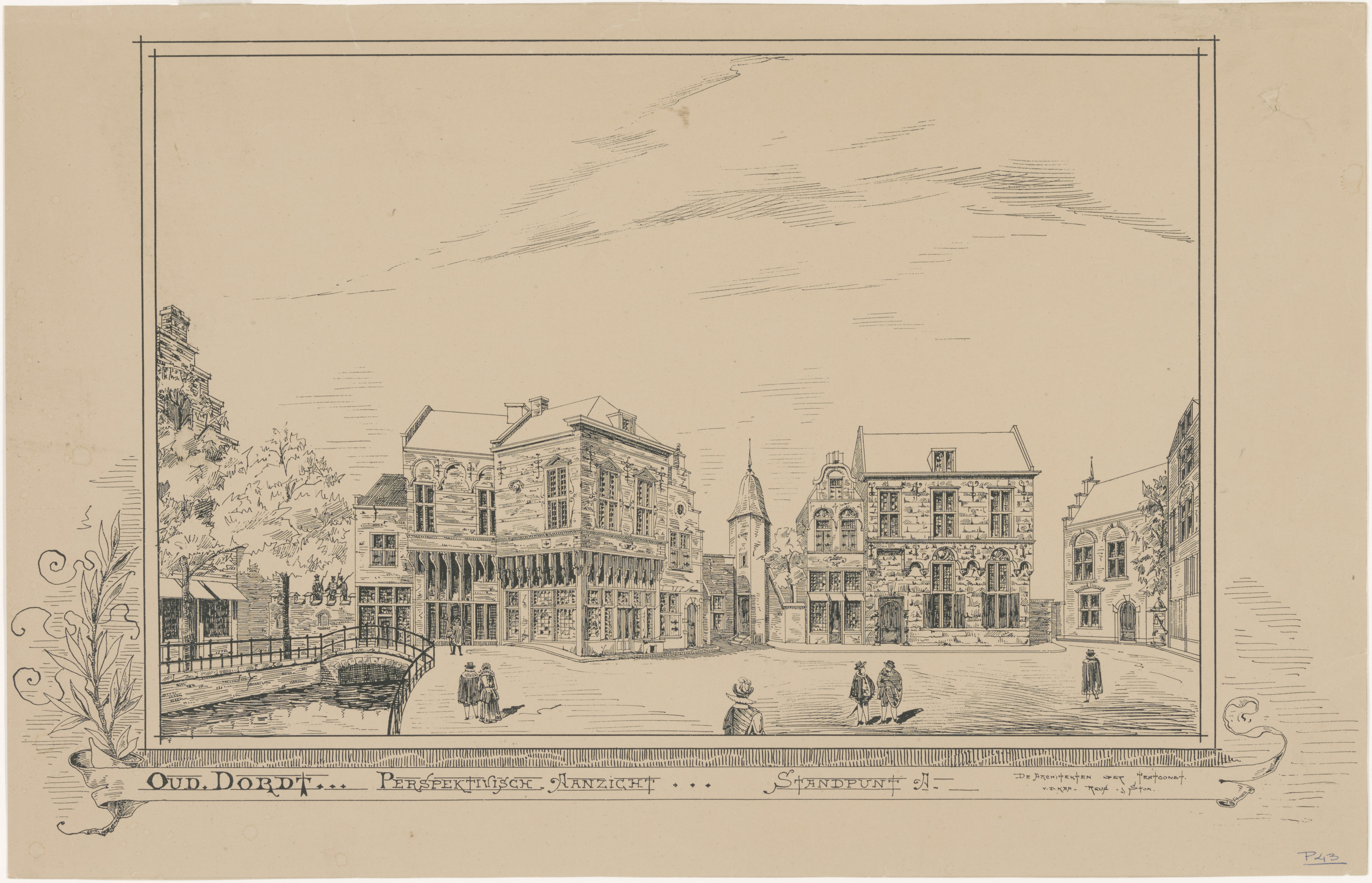 tekening Oud-Dordt perspektivisch aanzicht, (v.d. Kaa, Reus, Stok)