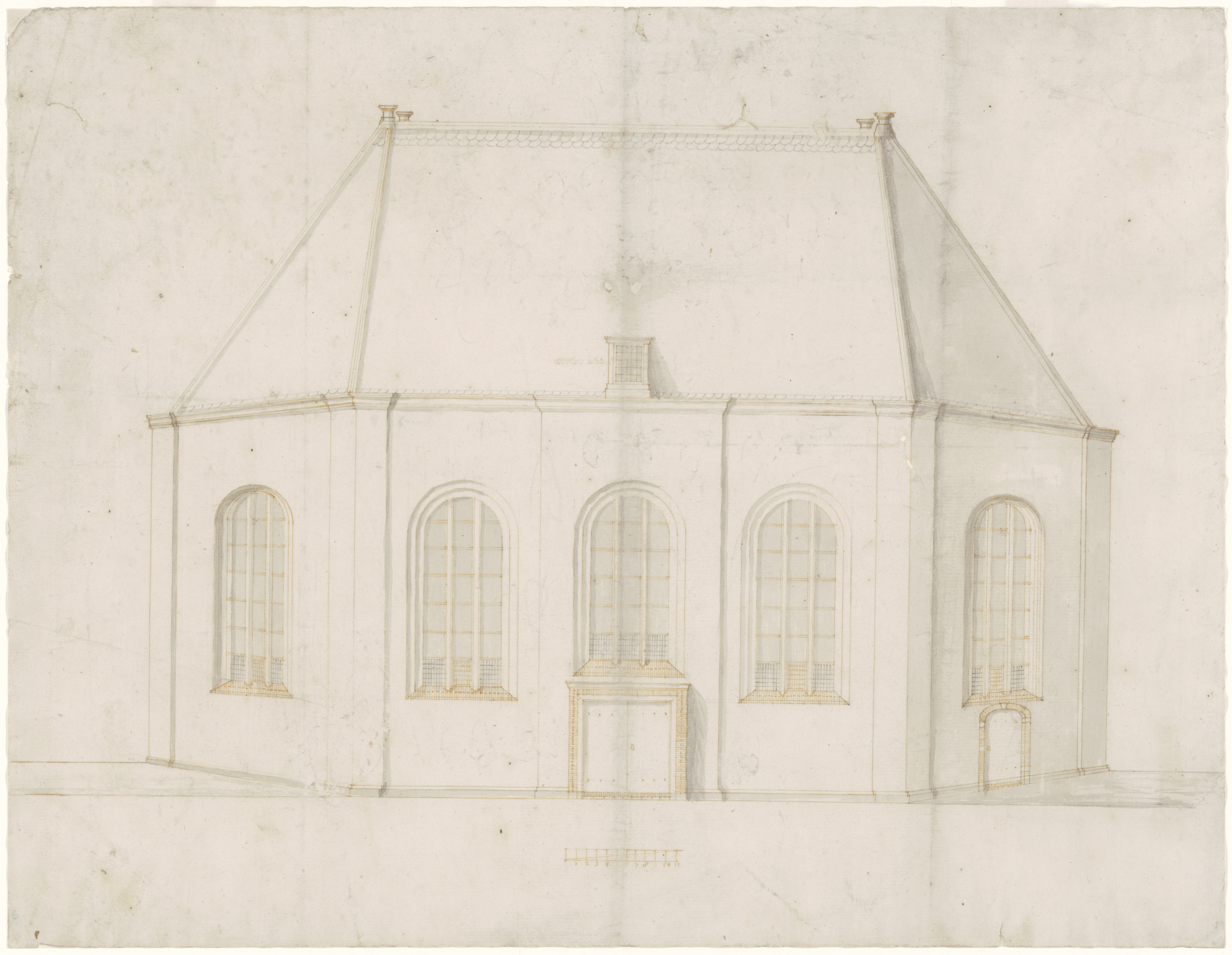 - Tekening van de Nederlands Hervormde Grote Kerk aan de Kerkbuurt in Sliedrecht.