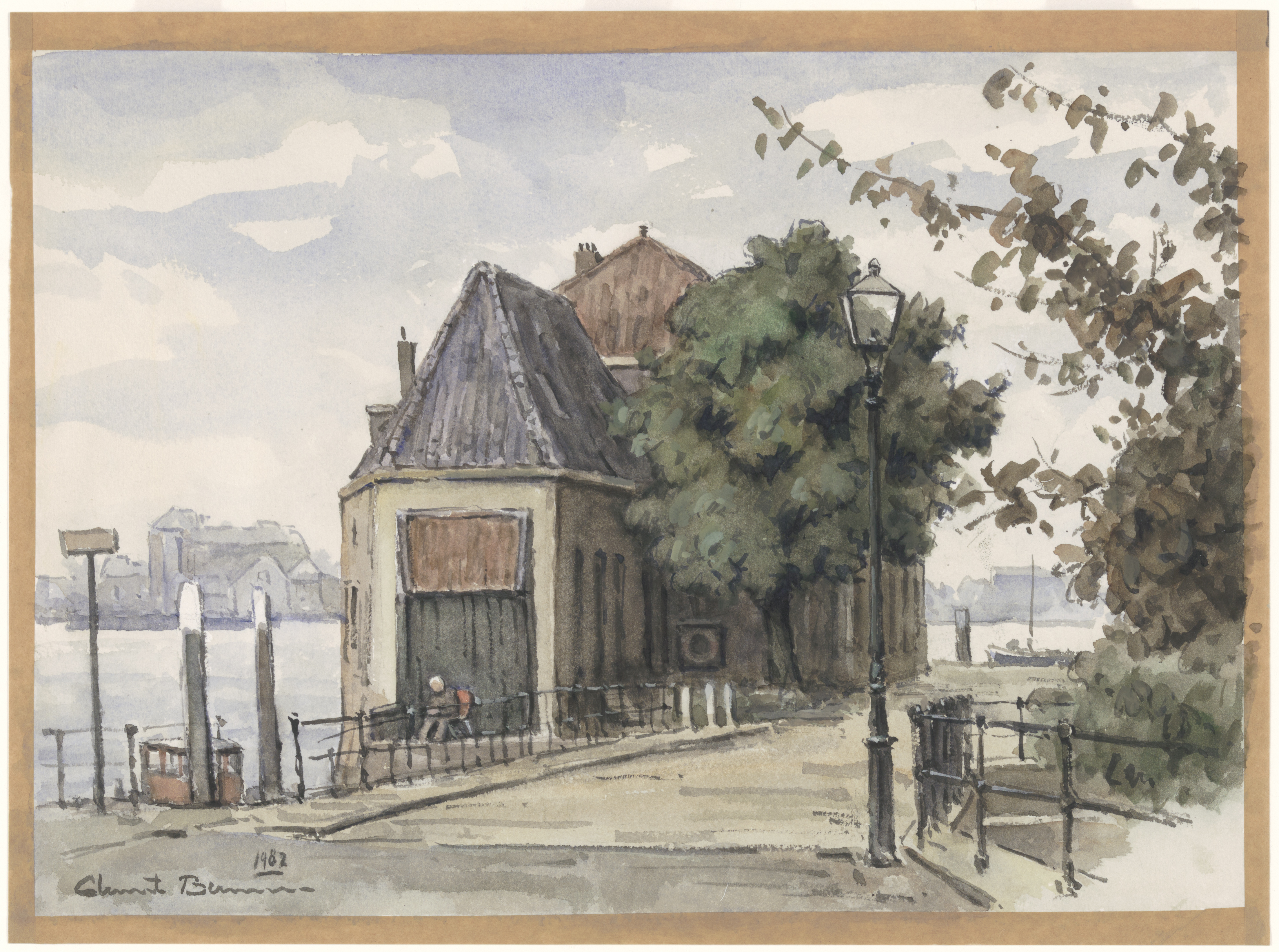 Aquarel door Clement Bezemer van de Mazelaarsbrug en het zakkendragershuisje in de …
