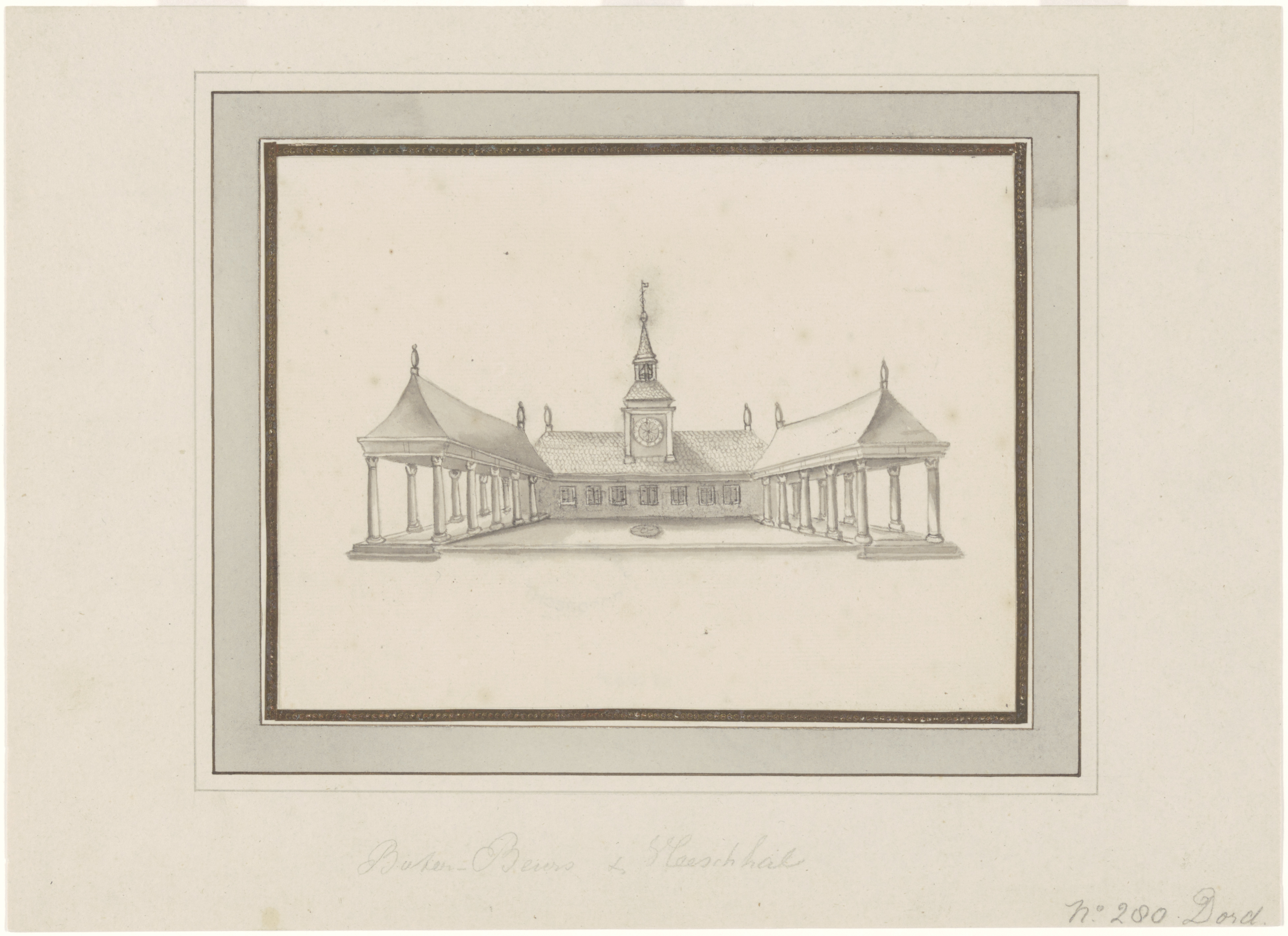 - Tekening van de boterbeurs en vleeshal op de Beurs, het latere Scheffersplein.
