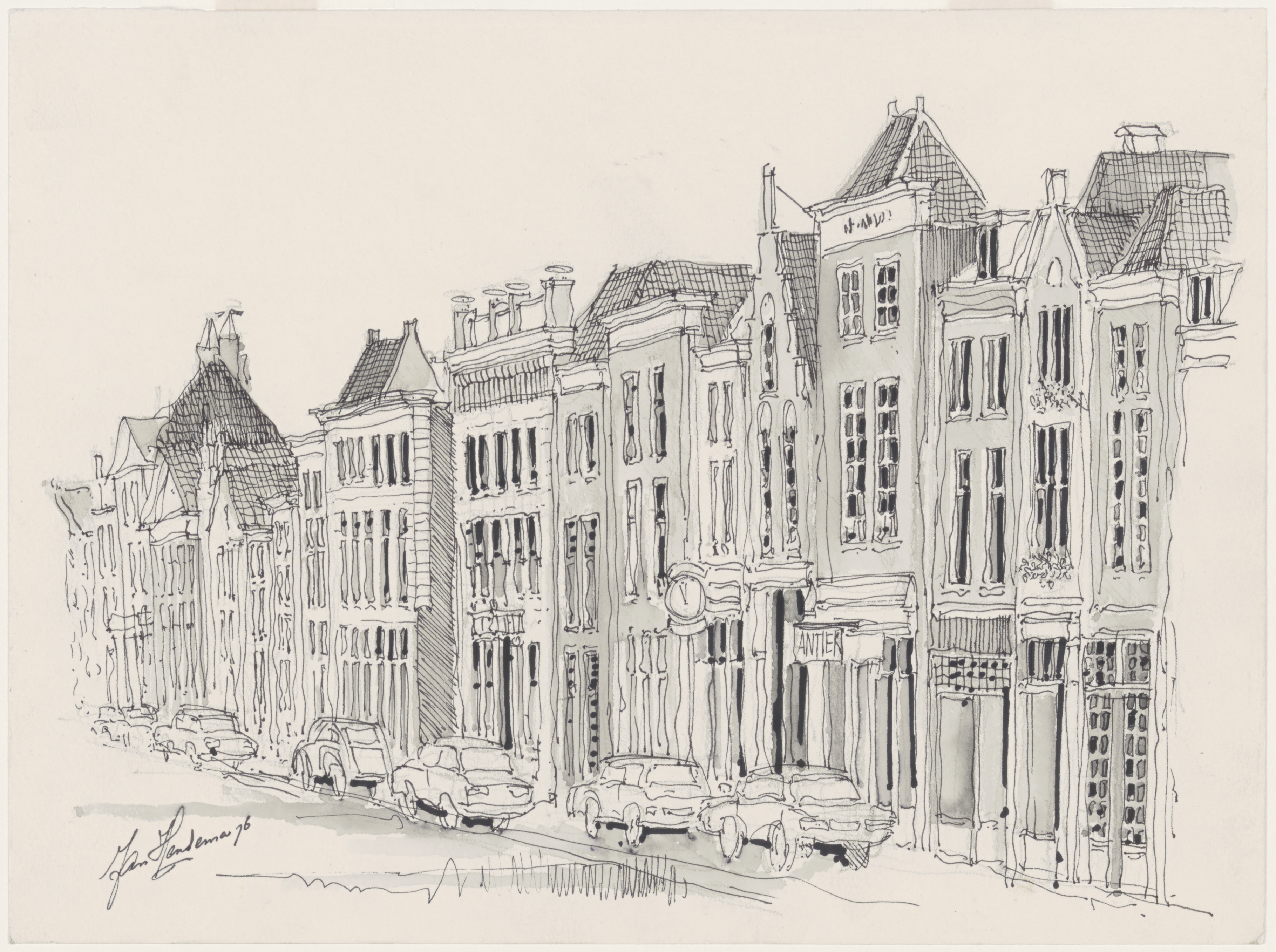 Tekening door Jan Hensema van het Steegoversloot, gezien vanaf de Vest richting …